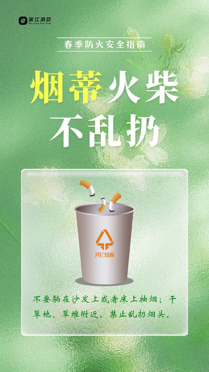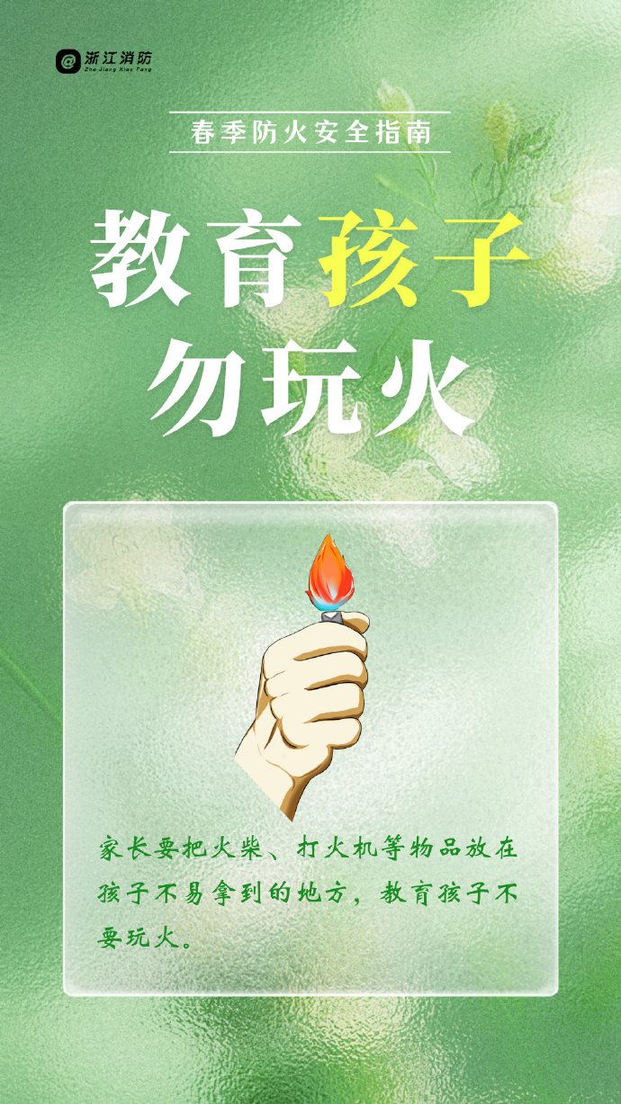 春季消防安全知识请查收! 2024-03-04 17:11 应急管理部微博 0 暮春时节,风干物燥,在享受美好时光的同时,我们在日常生活中一定要提高消防安全意识,强化消防安全防范措施,谨防各类火灾事故发生。这些春季消防安全知识请查收!↓↓