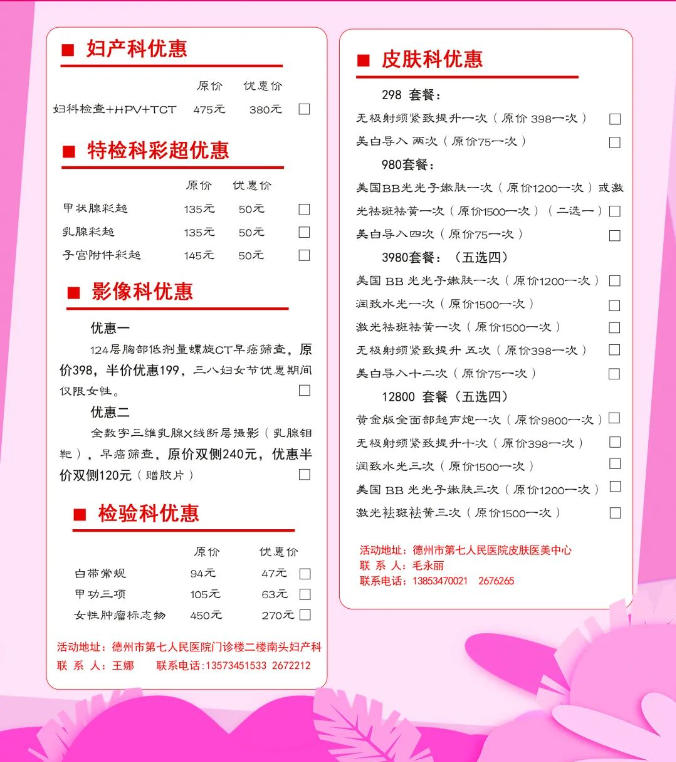 德州市第七人民医院推出“三八”国际妇女节优惠套餐