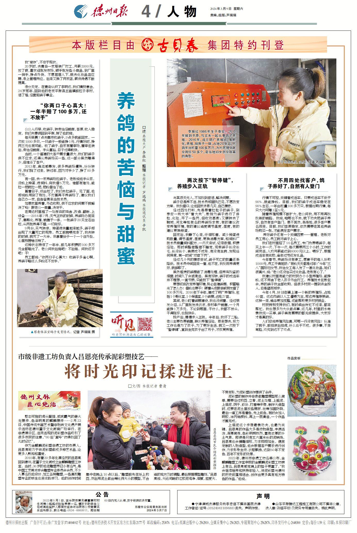 公公入行早,收鸽子,转卖给经销商,客源、收入稳定。我们夫妻俩回到平原,接了他的班。