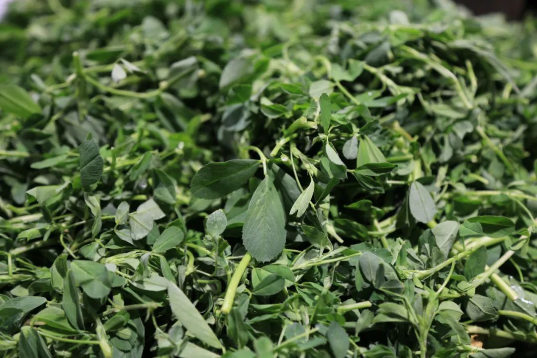 苜蓿含有大量的粗蛋白质和B族维生素、维生素C、维生素E等多种微量营养素。苜蓿早春返青时的幼芽营养成分高,含有丰富的膳食纤维,是一种上佳的高纤维低热量食物。