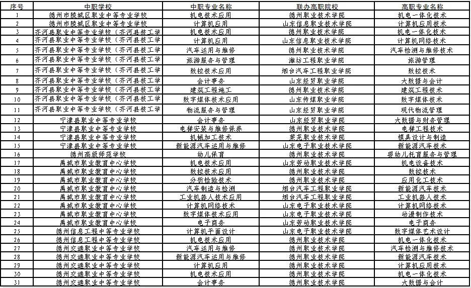 高水平中职学校联合高职院校举办初中后五年制高等职业教育专业点名单(德州)