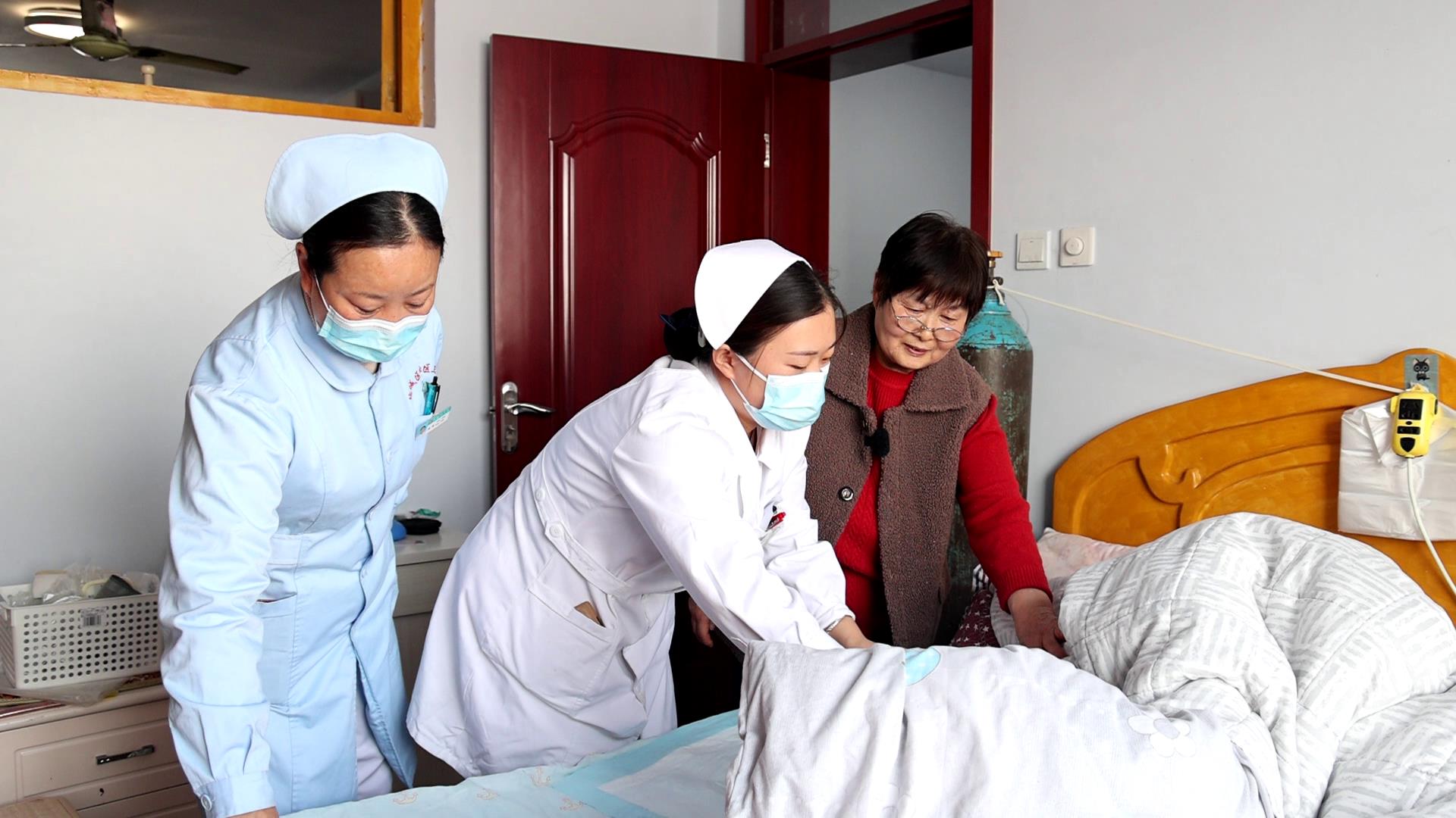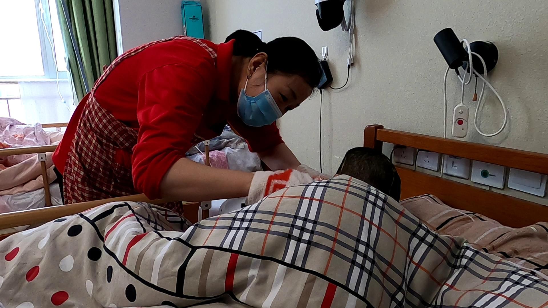 3月6日,德城区长护险定点医护机构养老护理员宋维娜来到居民李志刚家,为他的母亲刘玉英提供上门护理服务。老人今年81岁,因患有脑梗长期卧床,生活不能自理,护理员的到来为李志刚分担了不少压力。