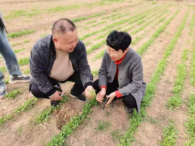 随后农技专家深入减河滩油菜观光种植现场查看作物生长情况,指出当前生产中存在问题及急需采取的技术措施。并与当地农户进行深入交谈,了解生产中的技术需求,给出科学有效的指导建议。