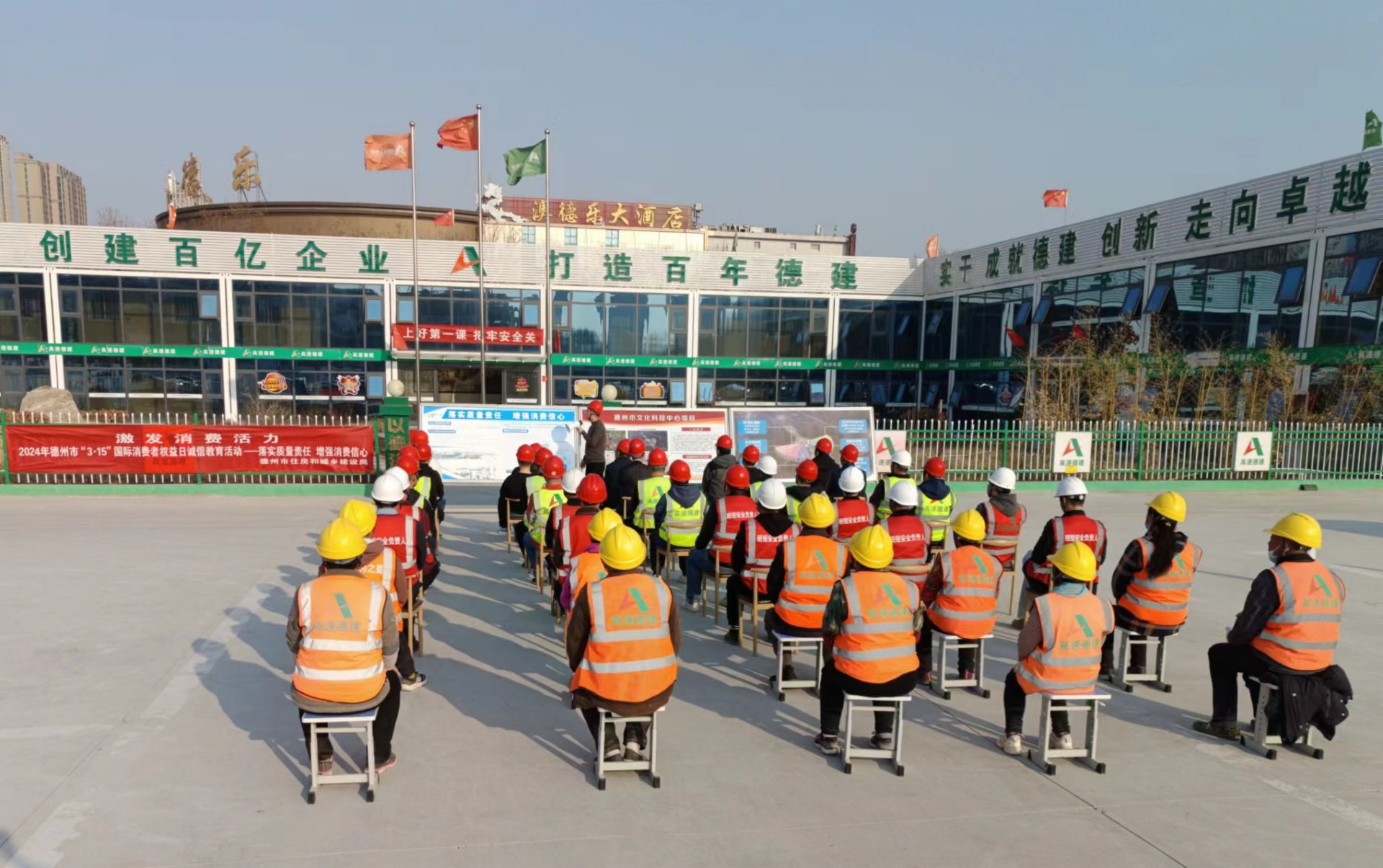 为严格落实工程质量责任,强化住建行业诚信建设,全面提升建设工程质量品质,3月15日下午,市住建局到市文化科技中心项目开展“3·15”国际消费者权益日诚信教育活动,局相关科室单位工作人员,项目管理人员和建筑工人共50余人参加活动。