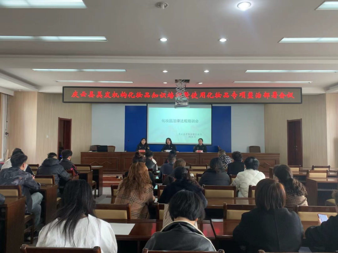 培训分4批召开,会上,执法人员全方位解读《化妆品监督管理条例》《化妆品生产经营监督管理办法》《化妆品标签管理办法》等法律法规,安排部署《庆云县美发机构化妆品专项整治行动方案》。对化妆品标签管理、进货查验、规范经营、留存票据等进行宣传讲解。会议要求全县化妆品经营主体必须严格落实主体责任,切实做到统一思想、提高认识、学以致用,深入贯彻落实化妆品相关法律法规,有效保障消费者的合法权益和保障民众的用妆安全。