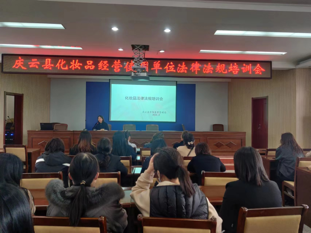 为提升辖区内化妆品经营使用质量管理水平,落实企业质量安全主体责任,规范辖区化妆品经营使用行为,3月27日,庆云县市场监管局组织全县化妆品经营使用单位召开化妆品相关法律法规培训会,全县化妆品经营使用单位及化妆品监管人员共计200余人参加培训。