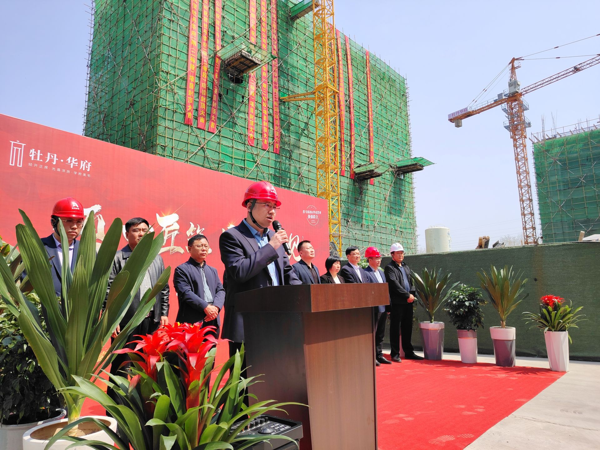 4月7日上午,牡丹华府举行封顶仪式。开发公司、总包单位、监理单位相关负责人参加。