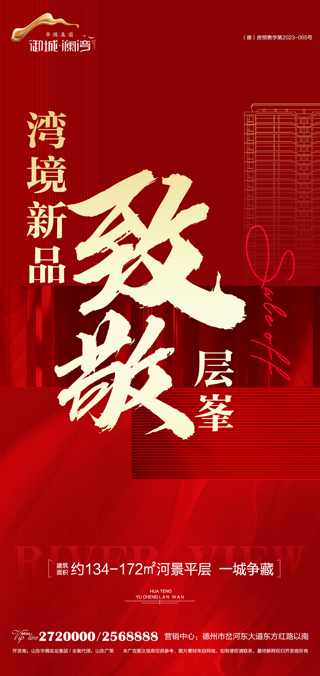 近日,岔河河畔的华腾御城·澜湾推出10号楼、13号楼河景平层新品,价格7618元/㎡起!