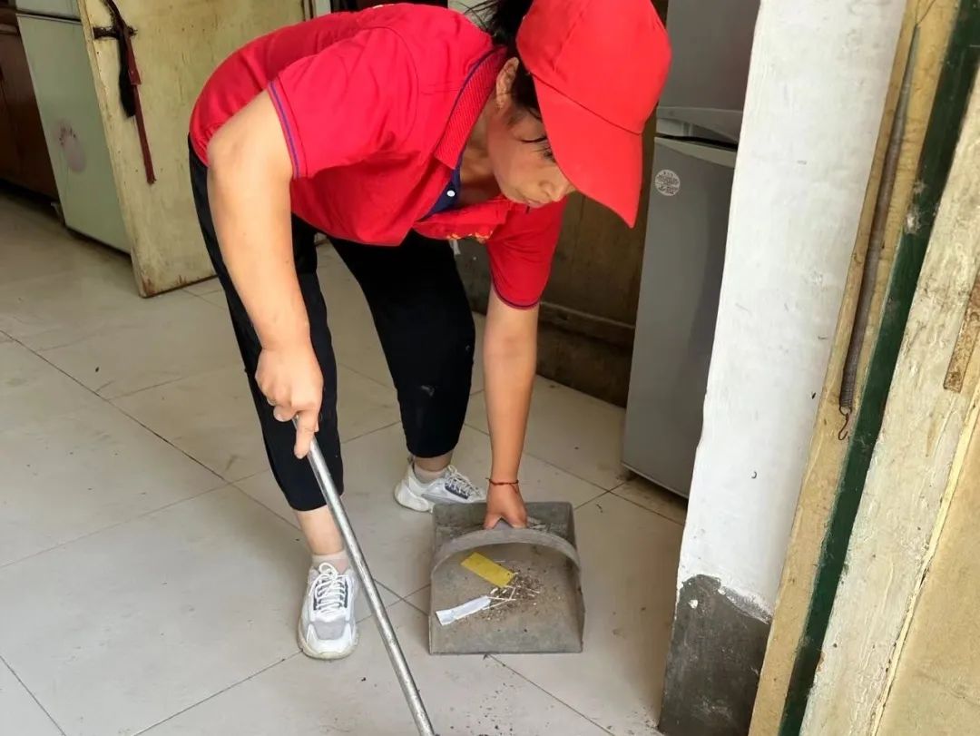 志愿者们还主动帮老人打扫卫生,归置屋内杂物。