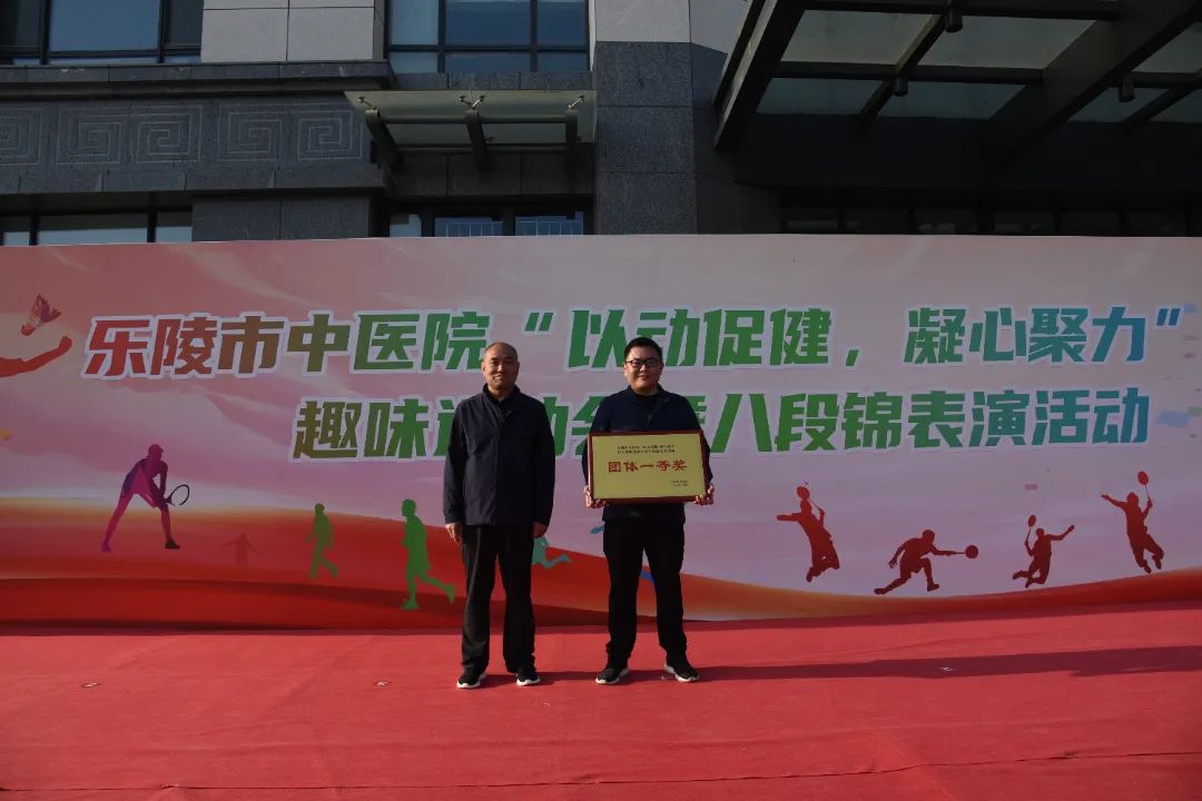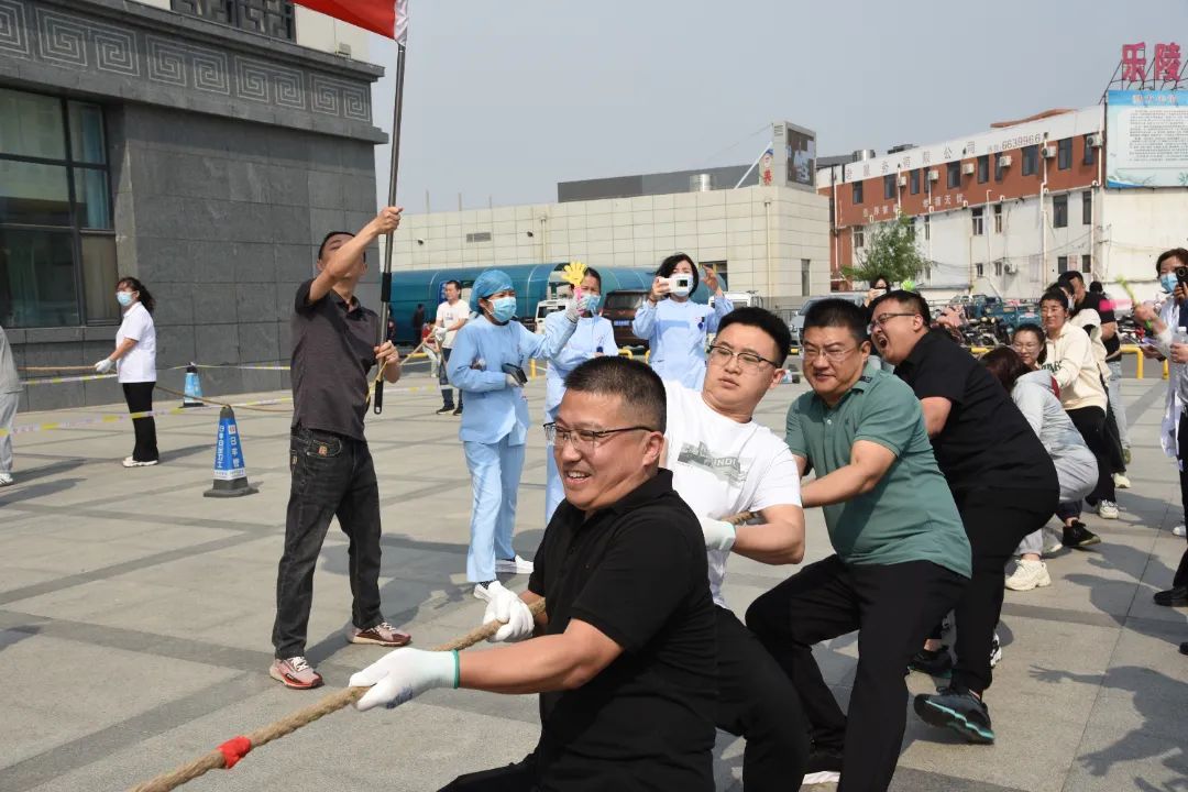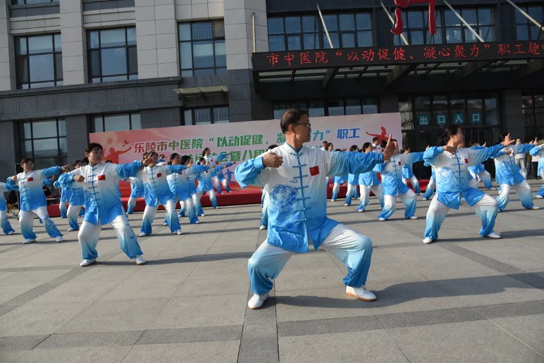 4月27日、28日下午,乐陵市中医院举办“以动促健 凝心聚力”职工趣味运动会暨八段锦表演活动。各科室主任、护士长、裁判员、运动员等200余人积极参与。