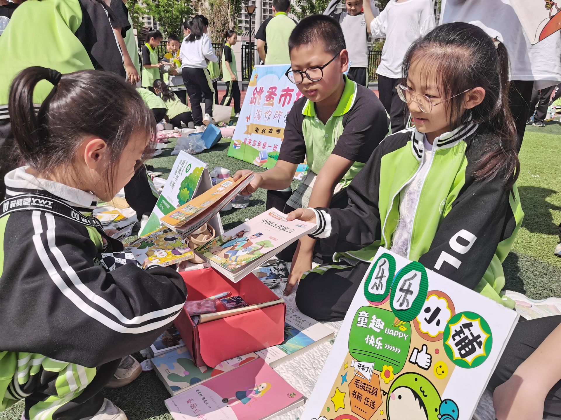 4月30日下午,德城区堤岭小学开展图书跳蚤市场活动,全校800余名学生参加。