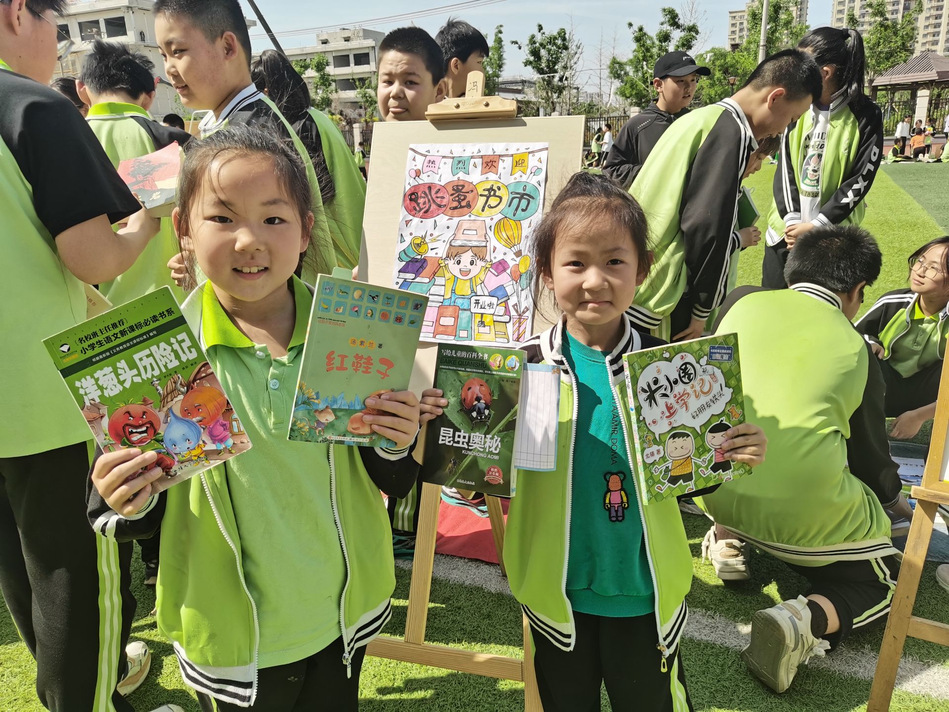 活动现场人头攒动,热闹非凡。名著、绘本、故事书、作文书、科技书、童话书应有尽有,学生们穿梭于各个摊点间,挑选着自己心仪的书籍,各种吆喝、叫卖声、讨价还价声不绝于耳,场面火热。