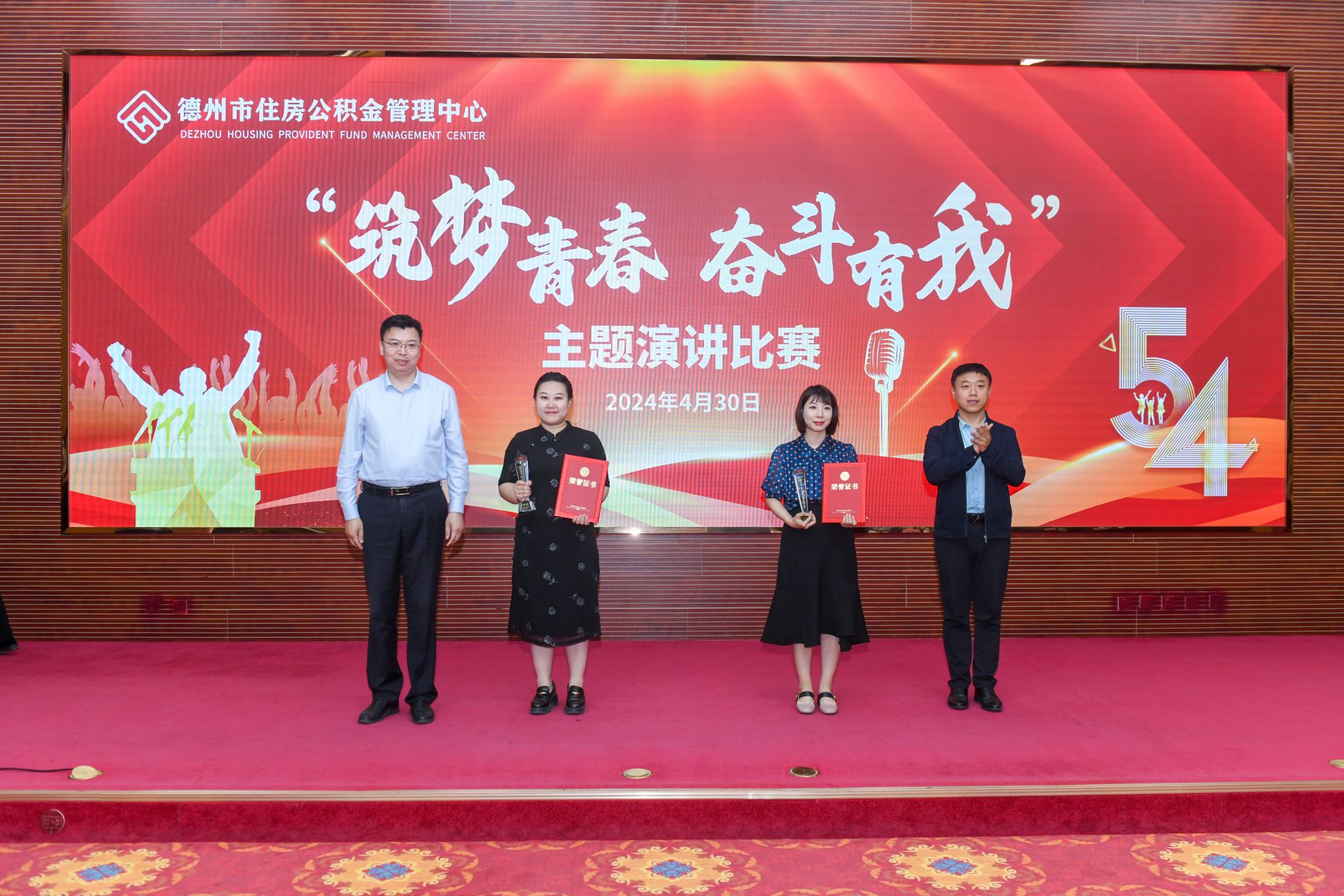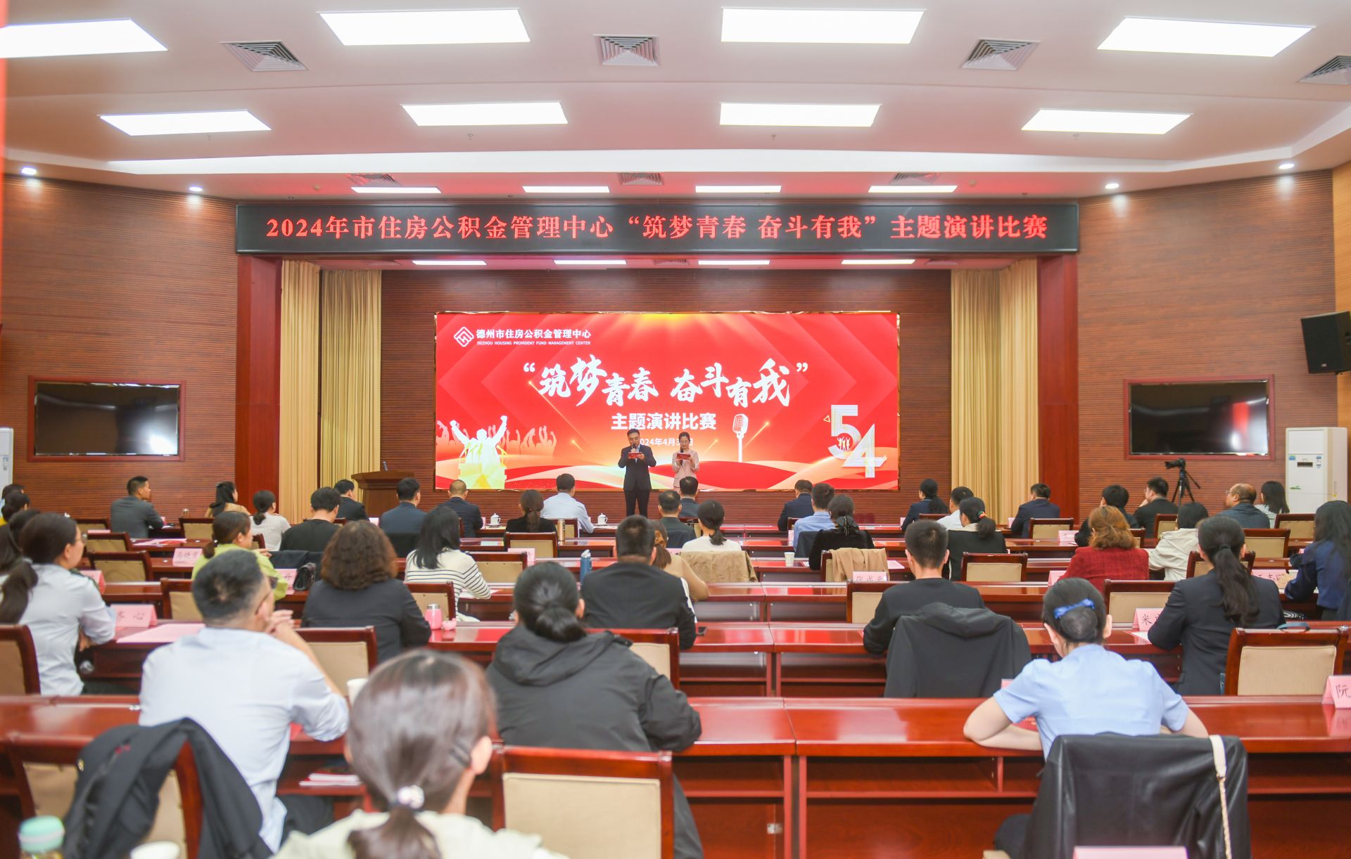 在“五四青年节”即将来临之际,4月30日,德州市住房公积金管理中心组织开展“筑梦青春 奋斗有我”主题演讲比赛,来自中心各科室、管理部的17名选手同台竞技。市委改革办、团市委、市委市直机关工委、市委宣传部有关负责人,市住房公积金管理中心全体干部职工共100余人在现场观看了比赛。