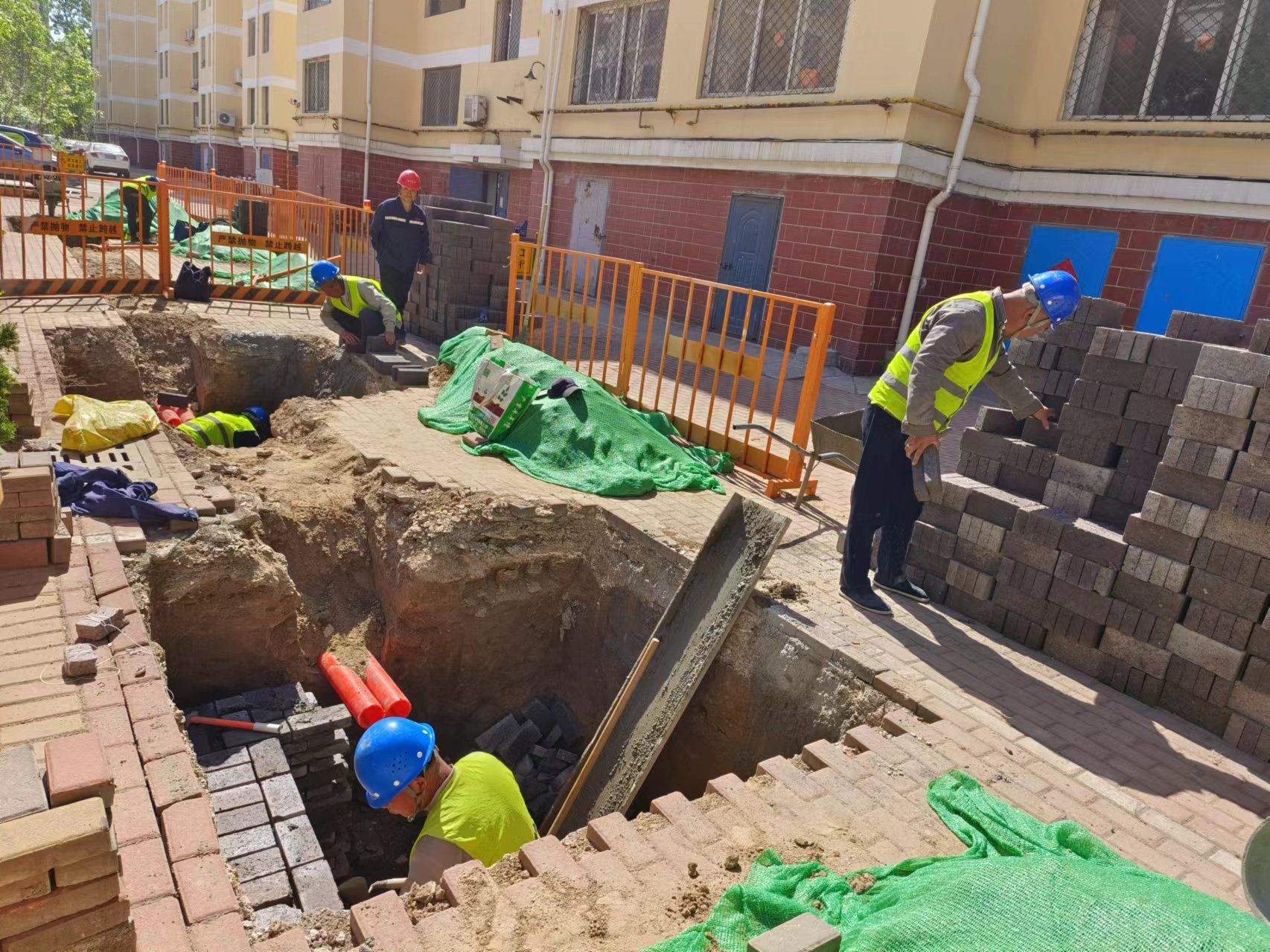 4月24日,在德城区月秀家园供电改造项目现场,国网德州供电公司工作人员正在紧锣密鼓施工,力争7月底完工,让居民尽早摆脱用电困扰。