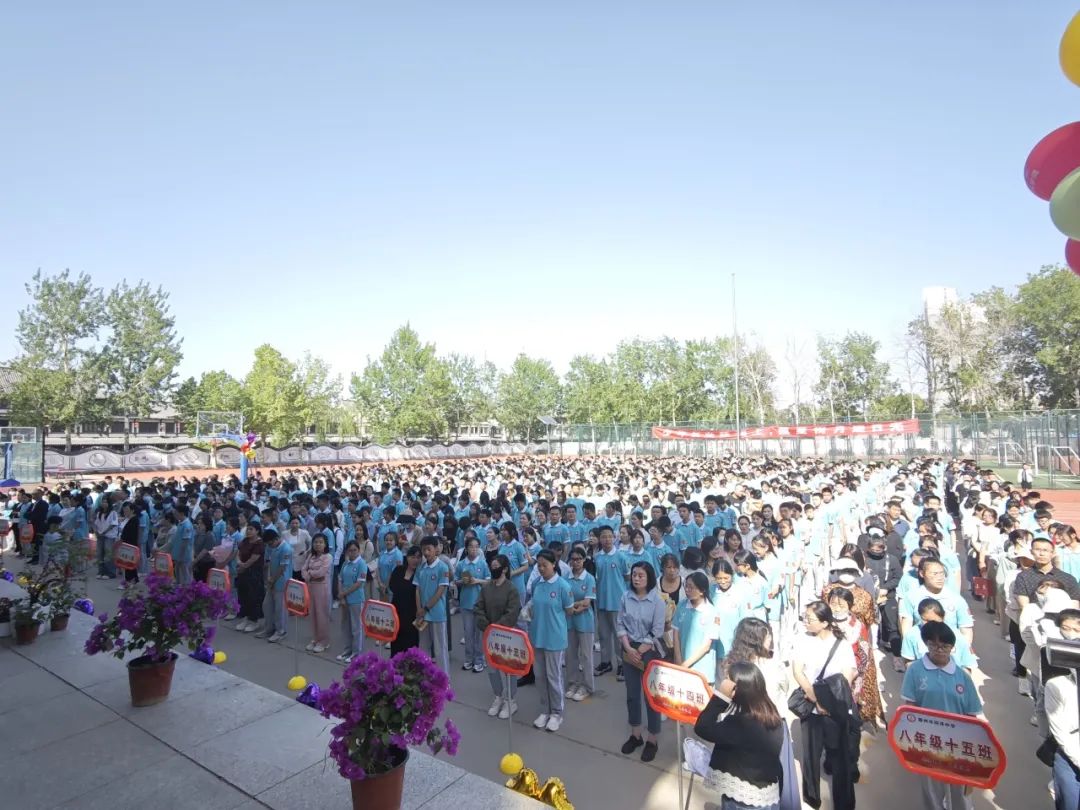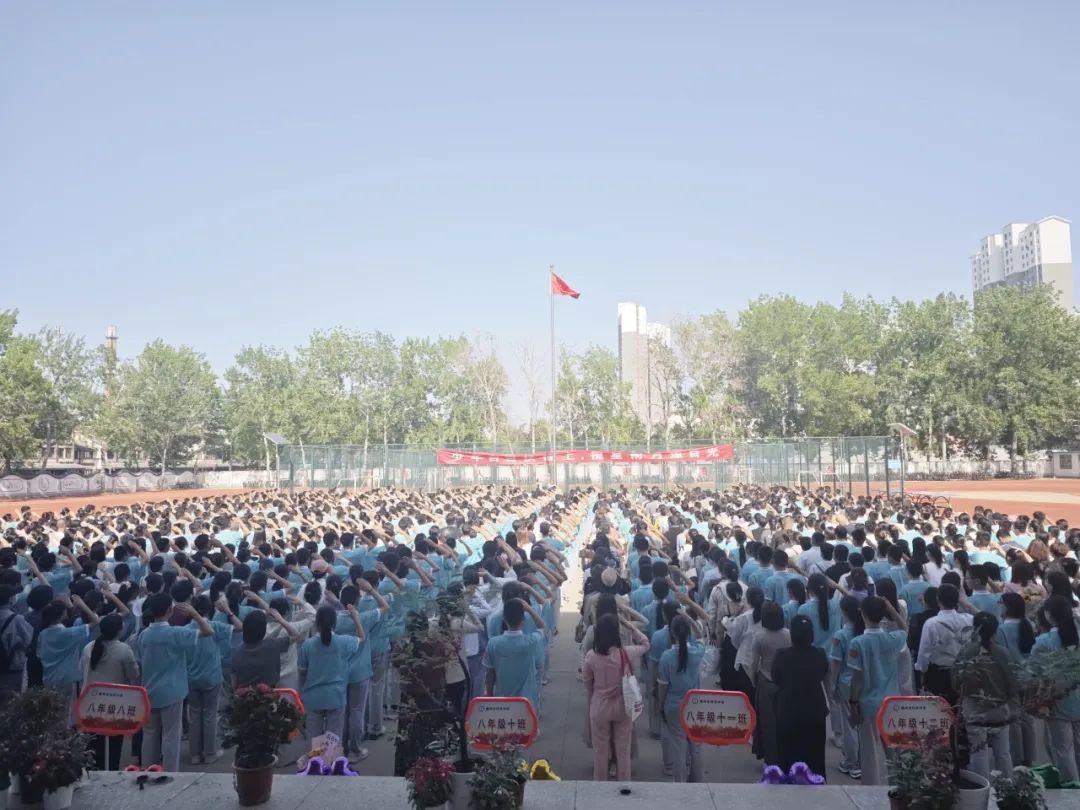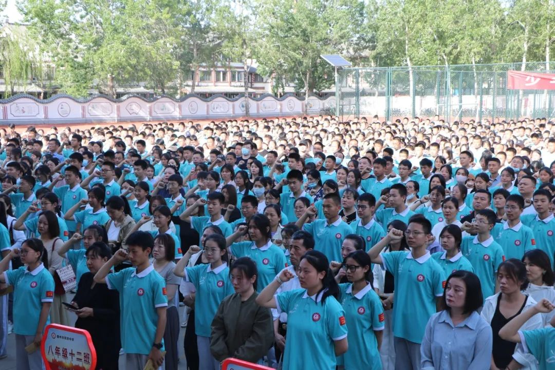 初二全体同学集体宣读青春誓词,声音洪亮,振奋人心。