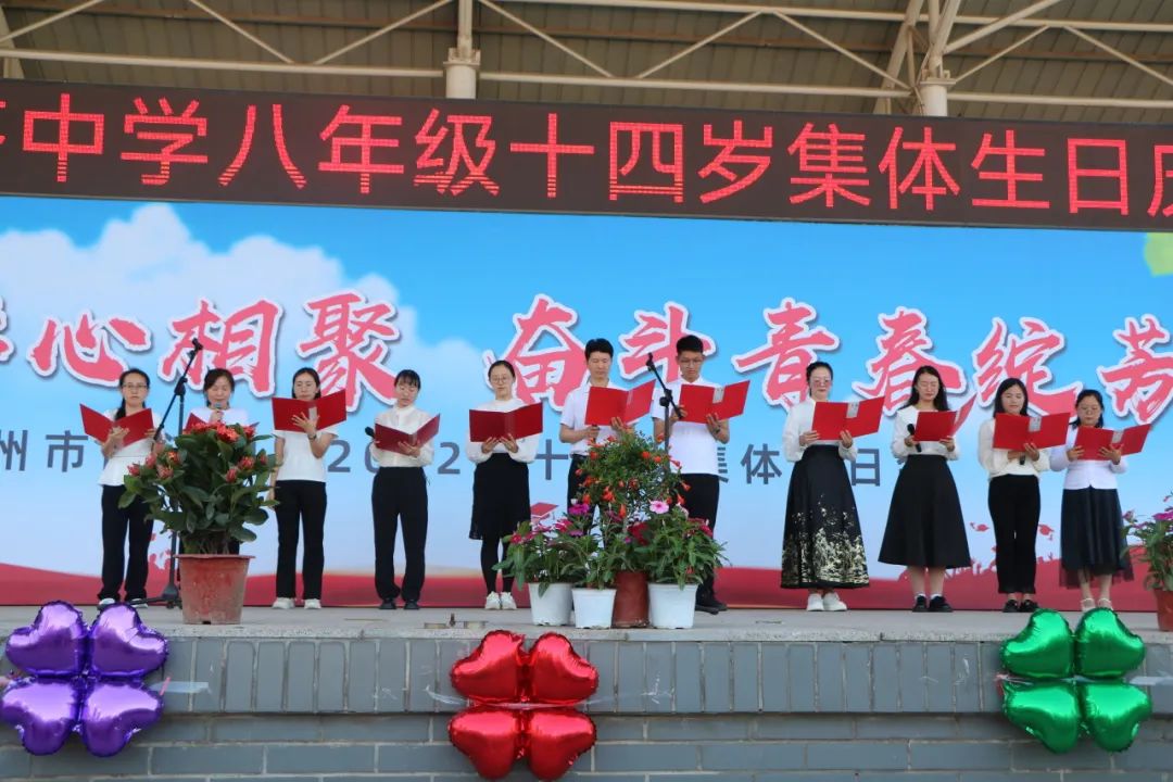 教师代表为学生们送祝福:“亲爱的同学们,恭喜你们迈入人生的十四岁。十四岁的你们,应砥砺奋斗,激昂梦想;十四岁的你们当鲜衣怒马,挥斥方遒;十四岁的你们如旭日东升,希望无限;十四岁的你们定灿若星辰,前途似海!”