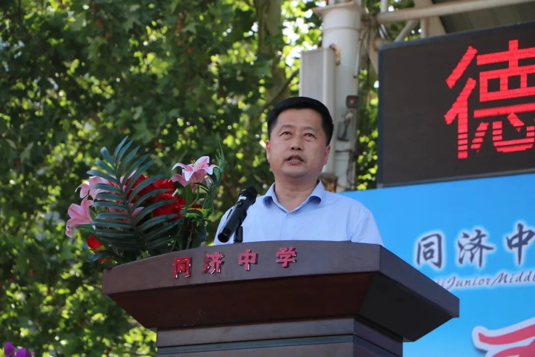庆典伊始,德州市同济中学校长张德军对全校学生提出三点希望:一是要自强不息,希望同学们扣好人生第一粒扣子,踏实走好每一步,成为父母的骄傲;二是要心怀感恩,对国家、父母、老师、同学感恩,对每一个为我们遮风挡雨的人感恩;三是要承担责任,对家庭、对社会、对国家有义不容辞的责任意识,勇于担当、敢于负责、有所作为。“同济的成长向人们证实了我校是一个敢于担当、追求卓越的团队。在过去的一年里,同济中学为全区教育事业的发展做出了卓越的贡献。希望全体师生携手、家校联手为孩子们保驾护航,做好孩子们的坚强后盾,祝愿所有同学向着美好的未来全力出发!”张德军说。
