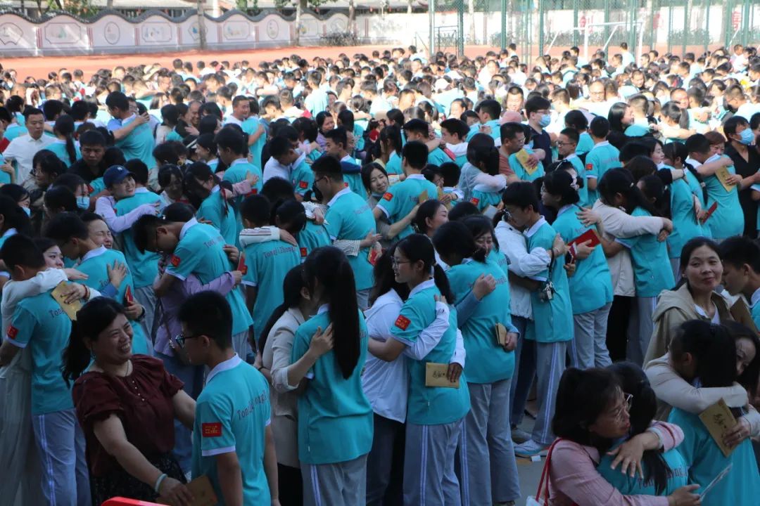 感恩父母。一封封亲情书信,承载着父母对孩子的深切期盼。全体同学面向父母,进行深情拥抱,感谢养育之恩!