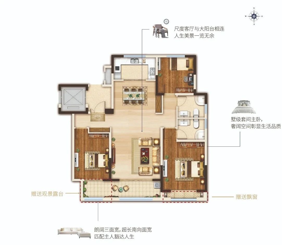 客厅、主卧、次卧三面朝南