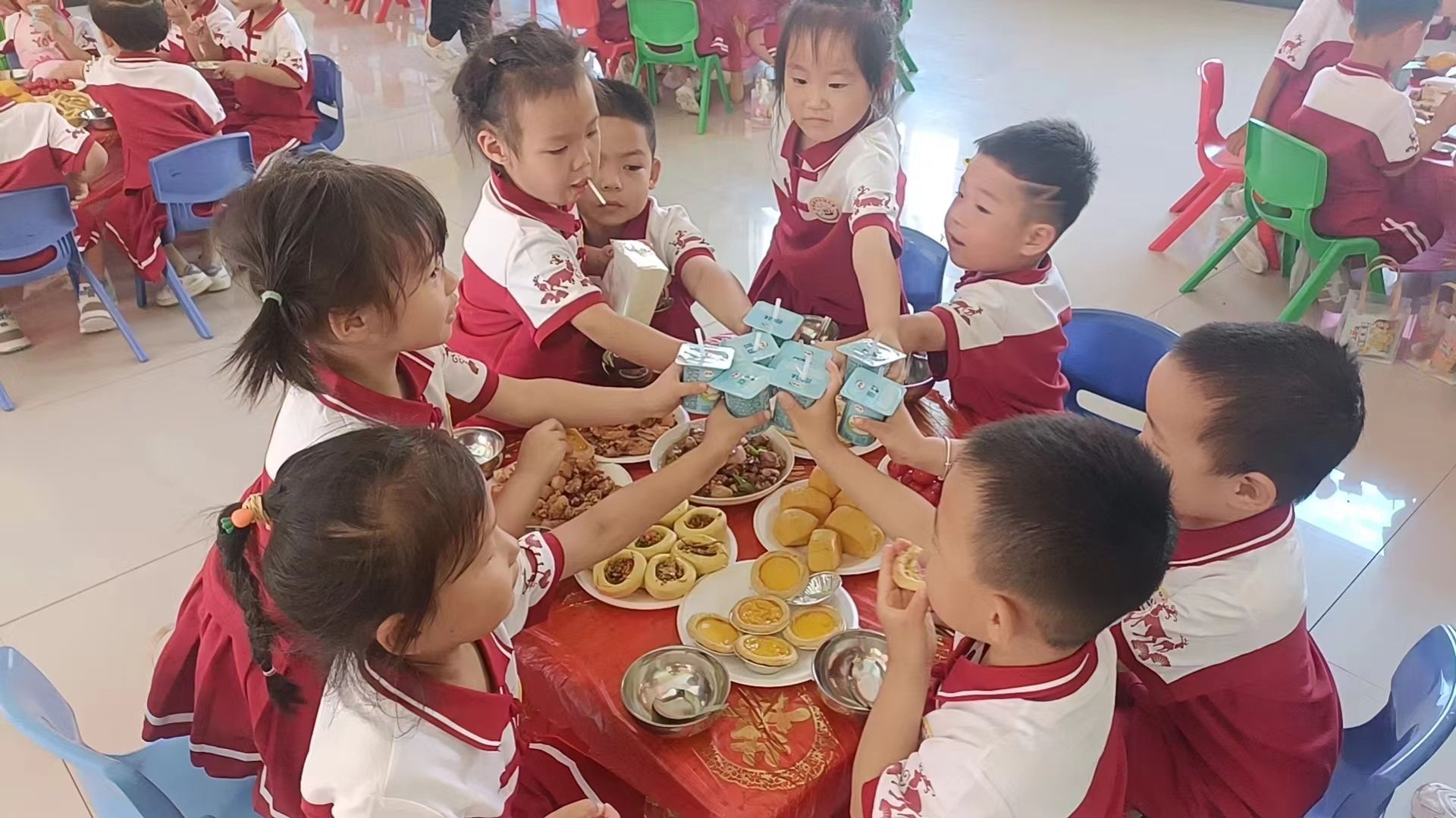 中午时分,进行“趴大桌 吃大席”就餐活动。老师先为小朋友们讲解了餐前礼仪,让大家学会谦让、尊重、团结,鼓励小朋友学会分享食物,养成良好的餐桌礼仪习惯。