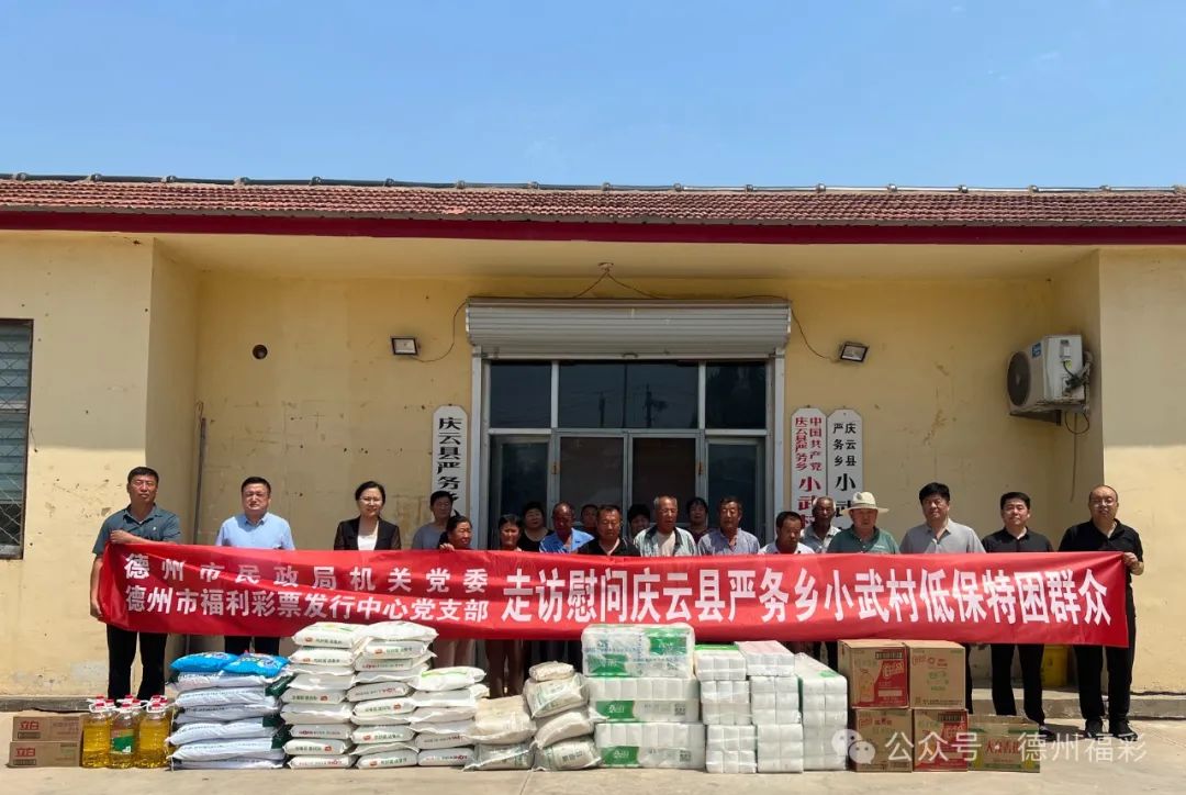 5月30日,在端午节即将来临之际,德州市民政局机关党委带领市福利彩票发行中心党支部赴庆云县严务乡小武村开展“走基层、解难题、办实事、惠民生”主题活动,实地走访慰问第一书记派驻村低保特困群众,为他们送去米、面、油等日常生活物资,并为5名低保家庭中的学生赠送书包、保温水壶、笔袋等学习用品。