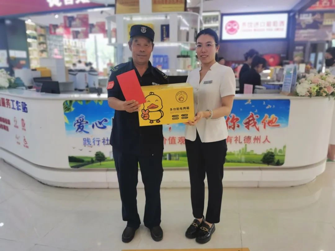 近日,一名顾客将印有“爱岗敬业保安全,拾金不昧好品德”的锦旗送到了澳德乐安保部王希银师傅的手上。事情的缘由是这样的,几天前王希银在澳德乐广场执勤时发现被遗落的万元现金,这时失主刚好前来找寻,王希银经过核对将现金交还给了失主。几天后,顾客送来了一面锦旗,对王希银拾金不昧的高尚品德表示感谢。