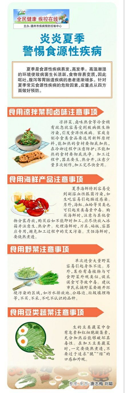 夏季是食源性疾病易发、高发季。高温潮湿的环境使致病菌生长活跃、食物容易变质,因此呕吐、腹泻等胃肠道疾病的患者逐渐增多。针对夏季常见食源性疾病的危险因素,应重点从四方面做好预防。