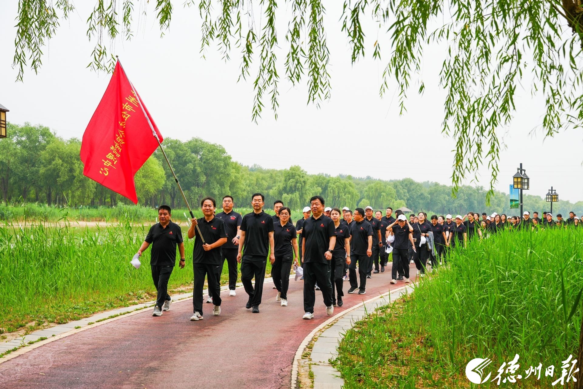 在党旗引领下,伴随着夏日的骄阳,市住房公积金干部职工排着整齐的队伍,热情高涨沿着精心设计的路线,感受运动的魅力,一路意气风发、步履矫健,彰显出公积金人昂扬向上的精神风貌。
