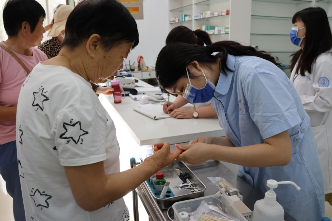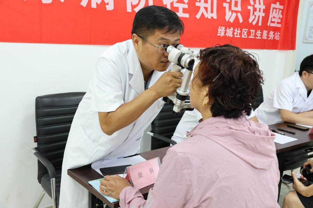 早上7点30分,义诊活动刚开始,绿城社区卫生服务站就站满了前来就诊、咨询的居民。德州市第七人民医院医护人员充分发挥各自专业优势,为居民们进行裂隙灯检查、眼底病变筛查、周围神经病变检查、合理用药指导等,并现场为居民测量血糖、血压、肌电图,发放宣传册进行健康宣教。活动中,医护人员耐心解答居民疑问,引导他们关注自身健康,做到防病于未然。