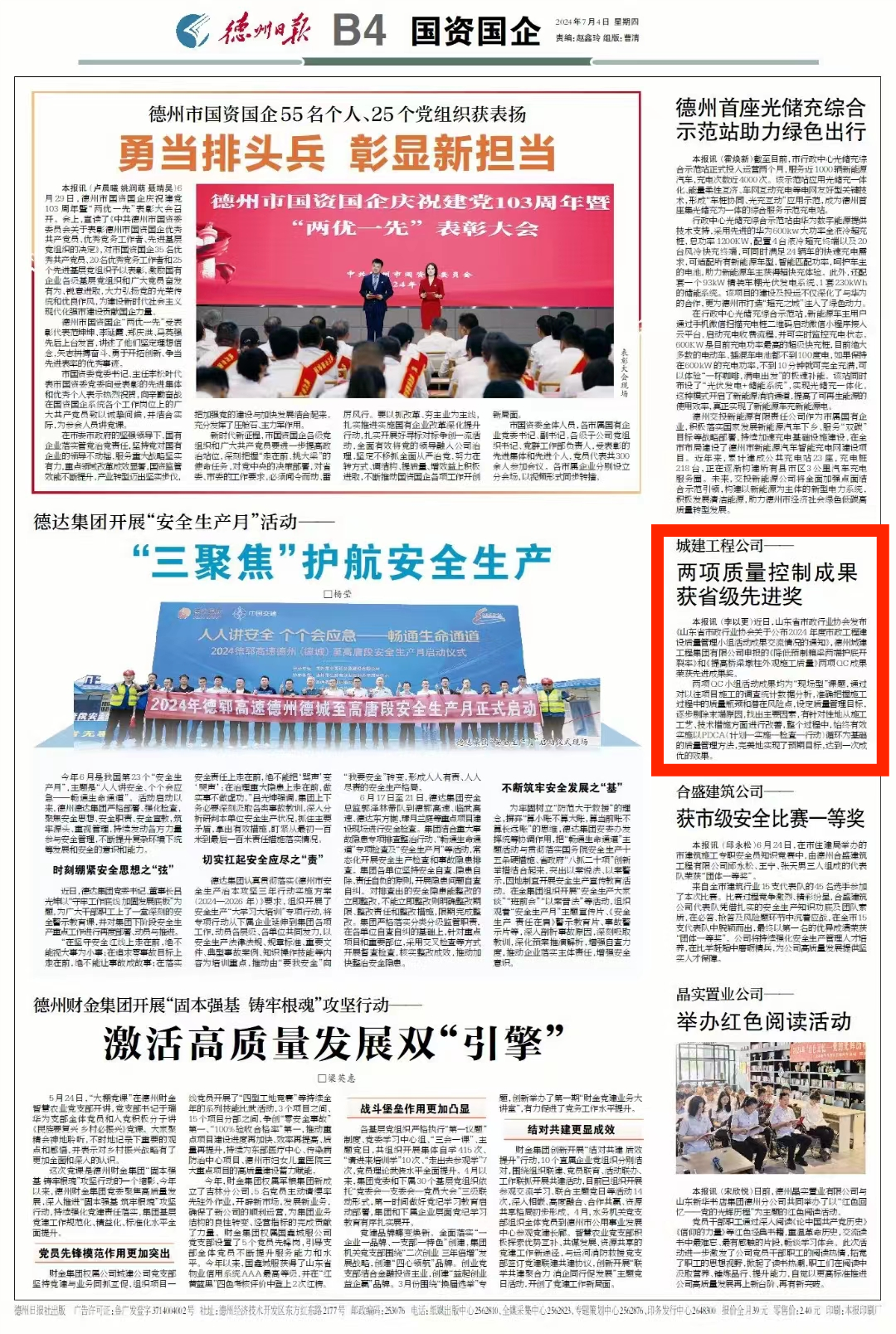 近日,山东省市政行业协会发布《山东省市政行业协会关于公布2024年度市政工程建设质量管理小组活动成果交流情况的通知》,德州城建工程集团有限公司申报的《降低预制箱梁两端护底开裂率》和《提高桥梁墩柱外观施工质量》两项QC成果荣获先进成果奖。