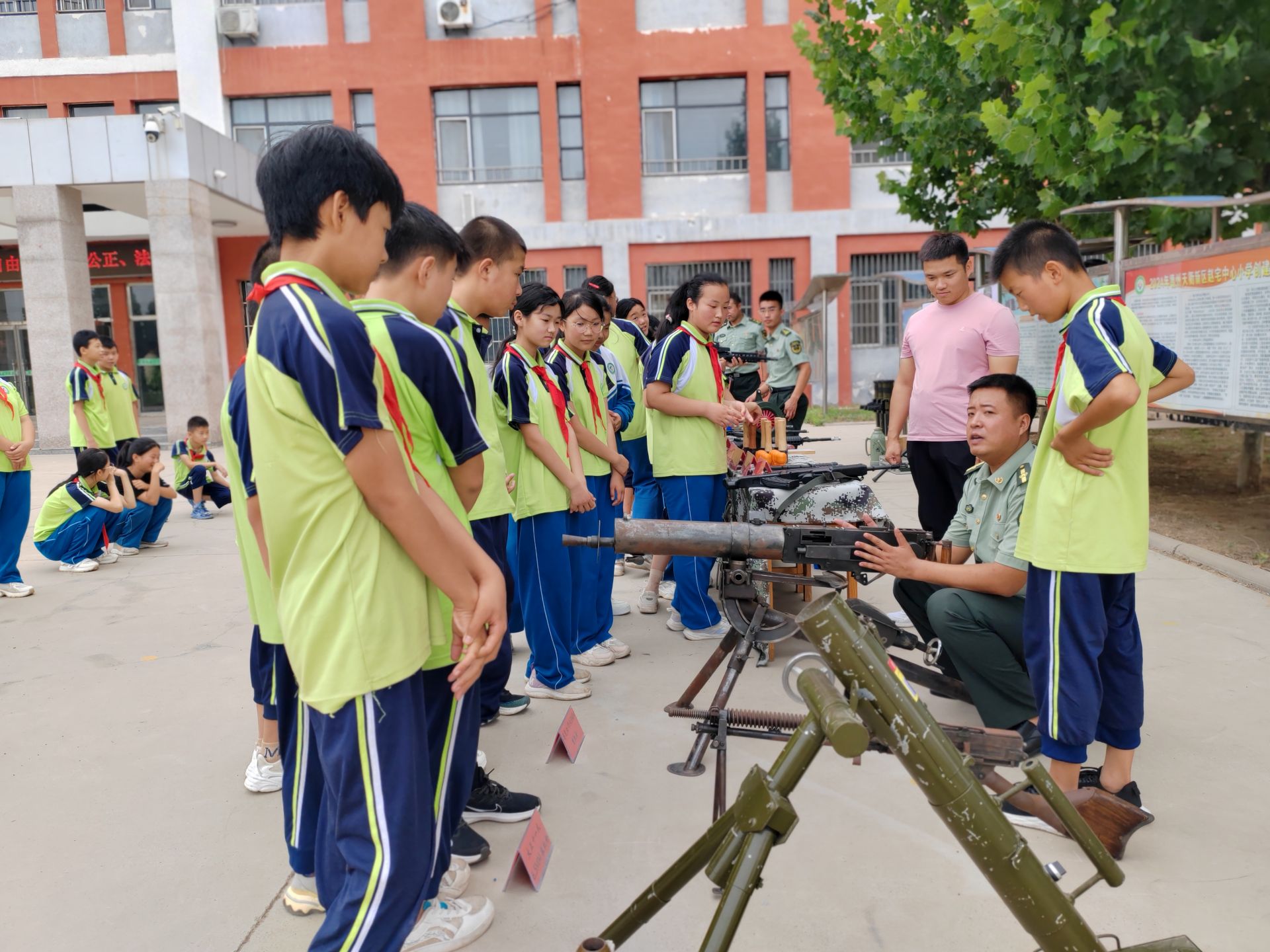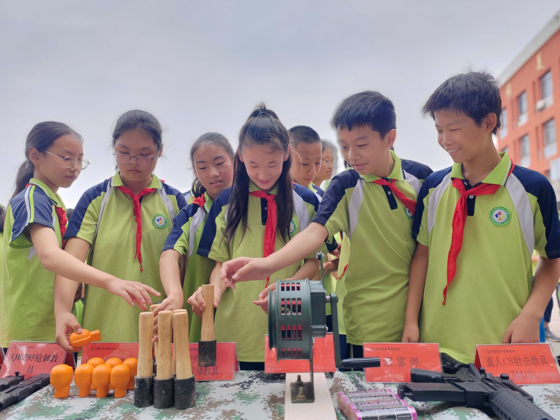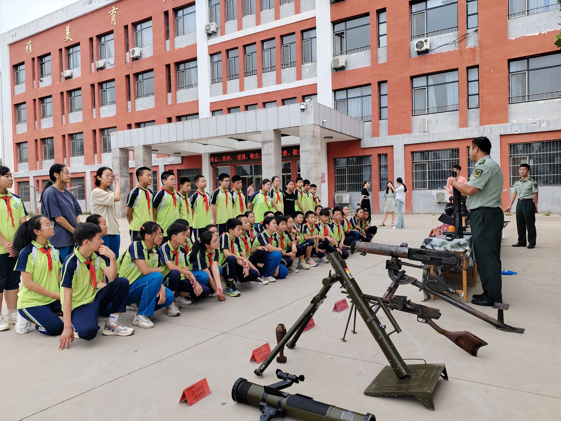 120反坦克火箭筒、迫击炮、马克沁重机枪、“歪把子”轻机枪、M416、92式手枪、手榴弹、手雷……7月5日,武城县明德红色教育基地教官携大量仿真武器装备,走进天衢新区赵宅中心小学校园,与六年级毕业生共赴一场国防教育之旅。