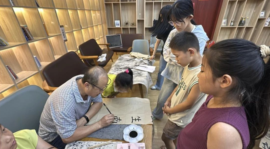 7月8日,牡丹华都暑期小业主公益书法课堂开课,免费教授小业主们书法知识。