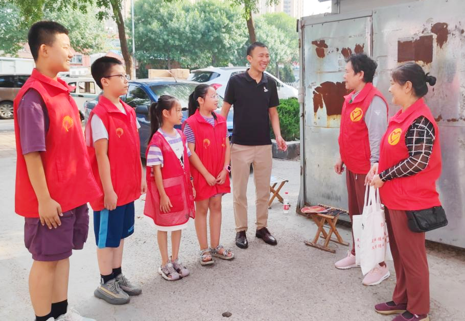 活动中,孩子们在社区工作人员的带领下,将冰糖、绿豆、毛巾等慰问品发放到环卫工人等户外劳动者手中,并提醒他们注意防暑降温,确保安全作业。