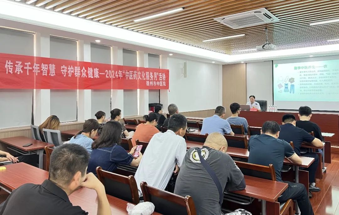 7 月30 日,德州市中医院第七党支部走进德州市城市建设综合开发有限公司,开展“中医药文化服务月”健康宣讲活动。