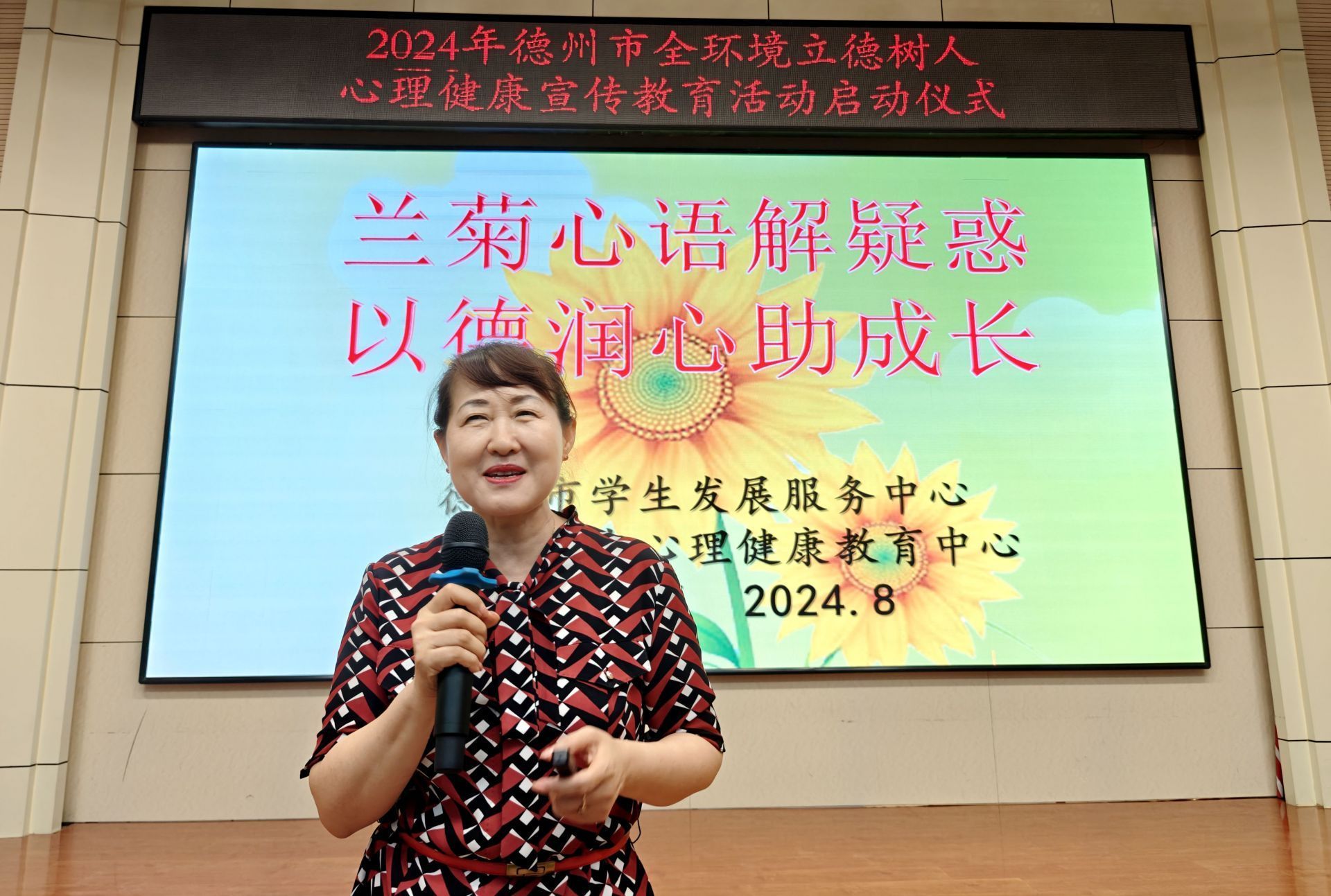 8月11日,“以德润心 阳光成长”2024年德州市全环境立德树人心理健康宣传教育活动正式启动。市文明办、团市委、市妇联、市教育局、市民政局、市卫健委和德城区等有关部门负责同志,以及心理教授、家长、老师、学生代表近100人参加。