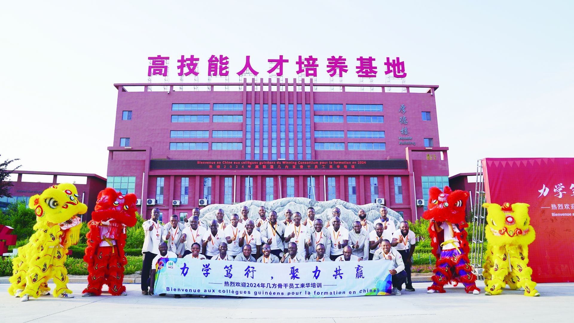 2019年,26名学员返岗后表现非常突出,企业对培训成果的肯定,也让德仁四方坚定了海外办学的决心。2021年3月,赢联盟德仁培训中心(以下简称培训中心)在几内亚正式成立,由山东德仁四方人才集团、山东四方技师学院运营管理,同时选派经验丰富的管理人员、教师团队,将“四方技工”职教经验、管理理念与当地人才培养需求有机融合。德仁四方真正实现了德州职教“走四方”的梦想。