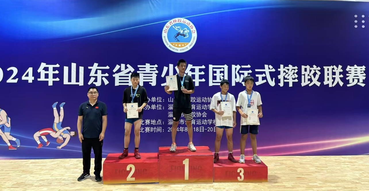 8月18日至20日,2024年山东省青少年国际式摔跤联赛在淄博市举行。全省12个市代表队参加古典式摔跤比赛,共有男子甲、乙、丙三个组别、26项级别。德州市体育运动学校古典式摔跤队选派16名运动员代表德州参赛,共获得5枚金牌、3枚银牌、2枚铜牌、2个第五名的好成绩。
