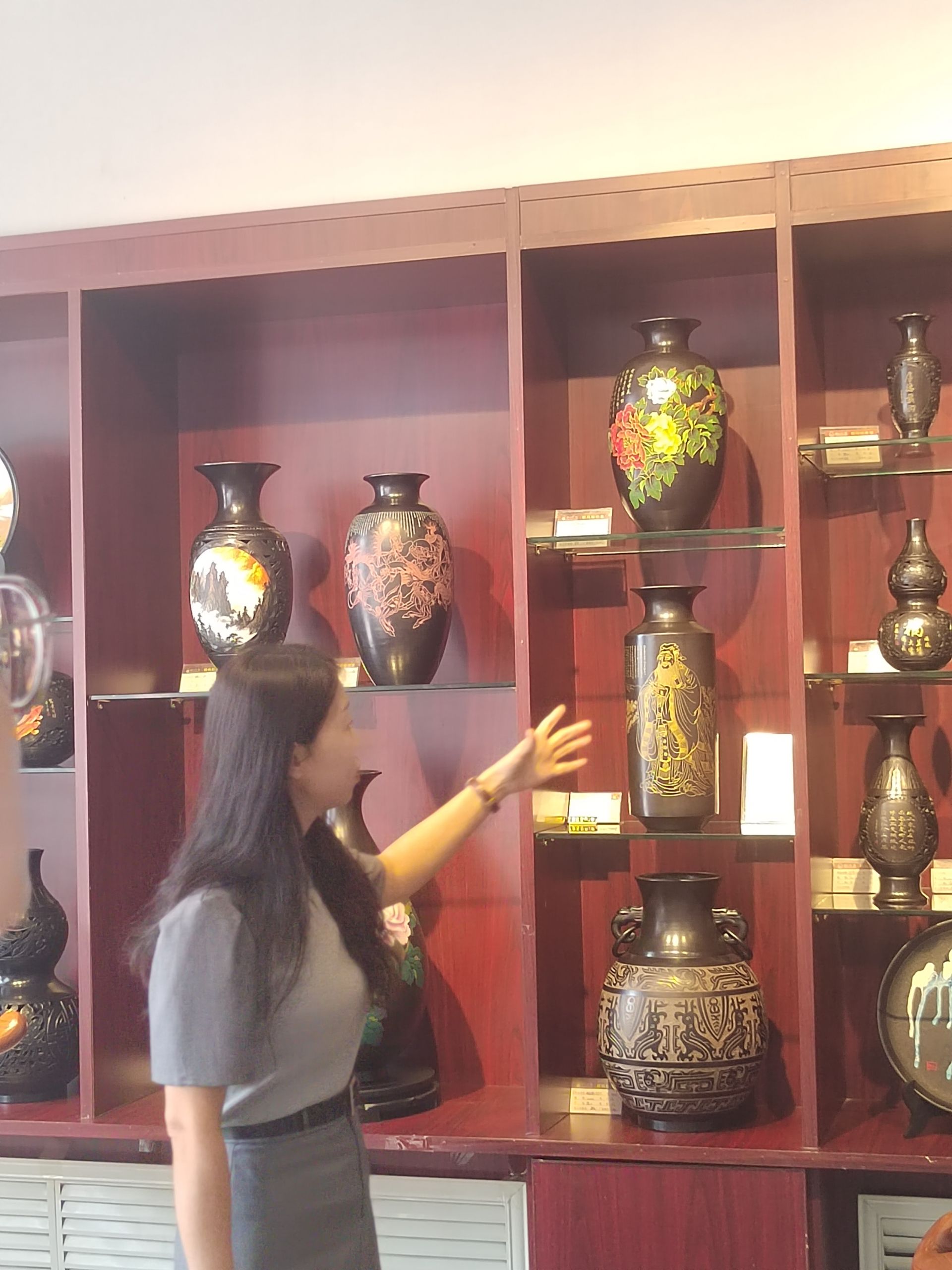 在“福生”金丝彩贴店内,一幅幅金丝彩贴画在灯光的照耀下闪烁着迷人的光芒。这些作品以其独特的工艺和绚丽的色彩,展现出非凡的艺术魅力。金丝彩贴画制作过程极为复杂,需要经过精心的设计、细致地描绘和耐心地粘贴,每一道工序都凝聚着艺人的匠心与技艺。