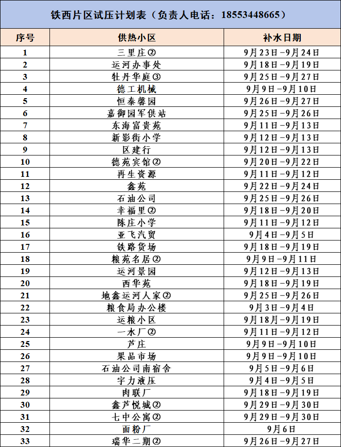 5.铁西片区试压计划表(负责人电话:18553448665)