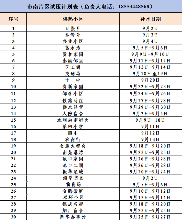 2.市南片区试压计划表(负责人电话:18553448568)