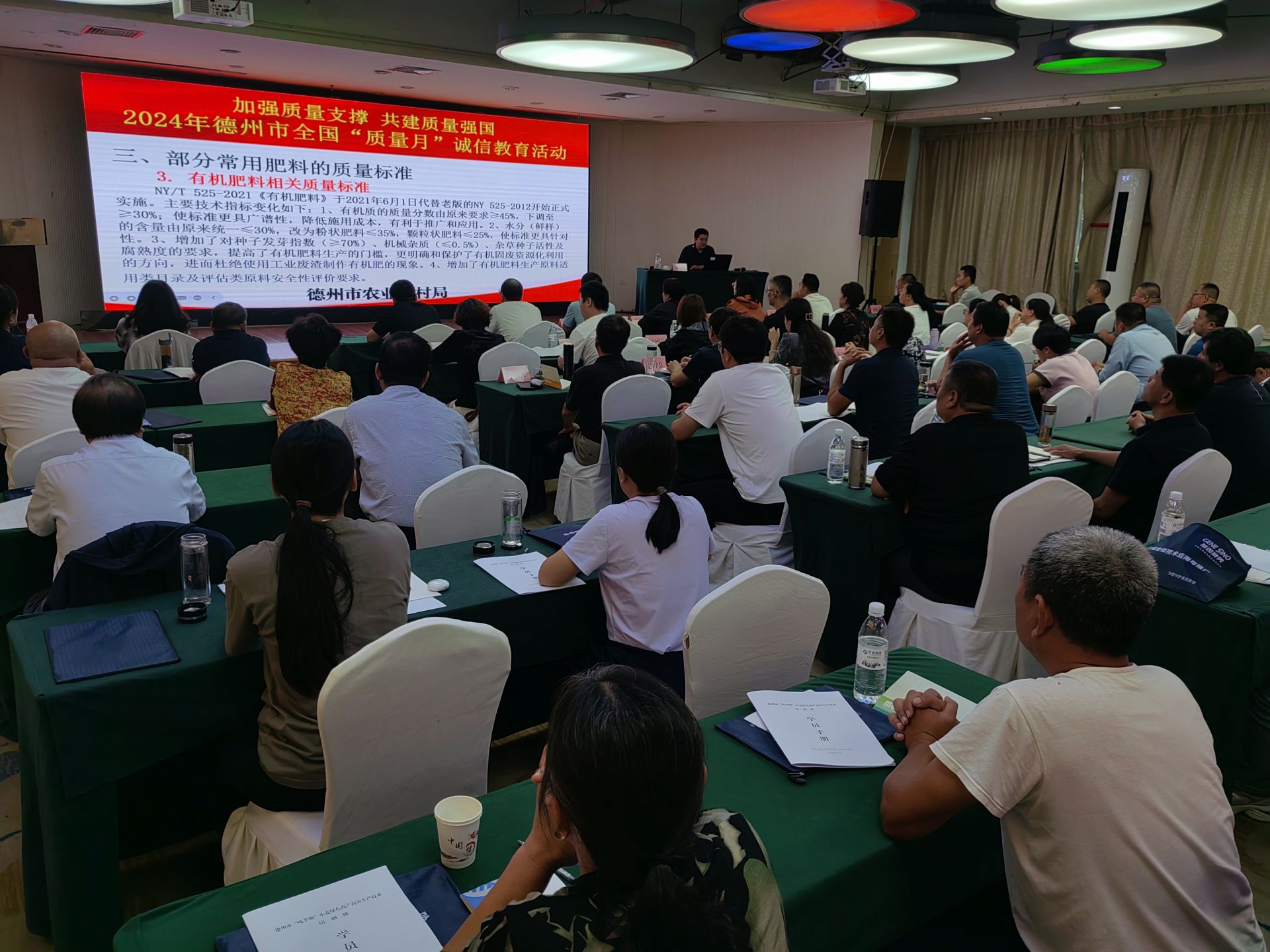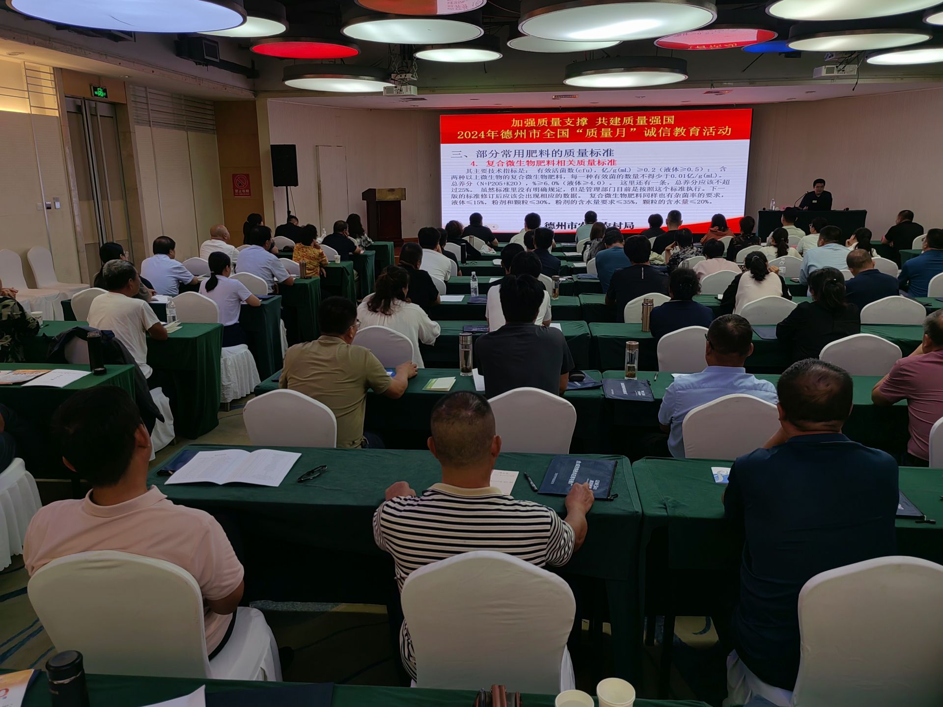 为深入推动全民质量行动,做好肥料标准宣贯,9月13日,德州市农业农村局开展全国“质量月”诚信教育活动,组织肥料质量标准宣贯培训,全市肥料生产经营企业、各县市区土肥站技术员等百余人参加。
