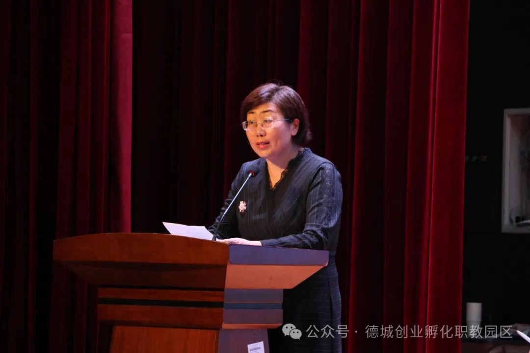 德州市教育局职业教育与民继教育科一级主任科员贾少青发表讲话