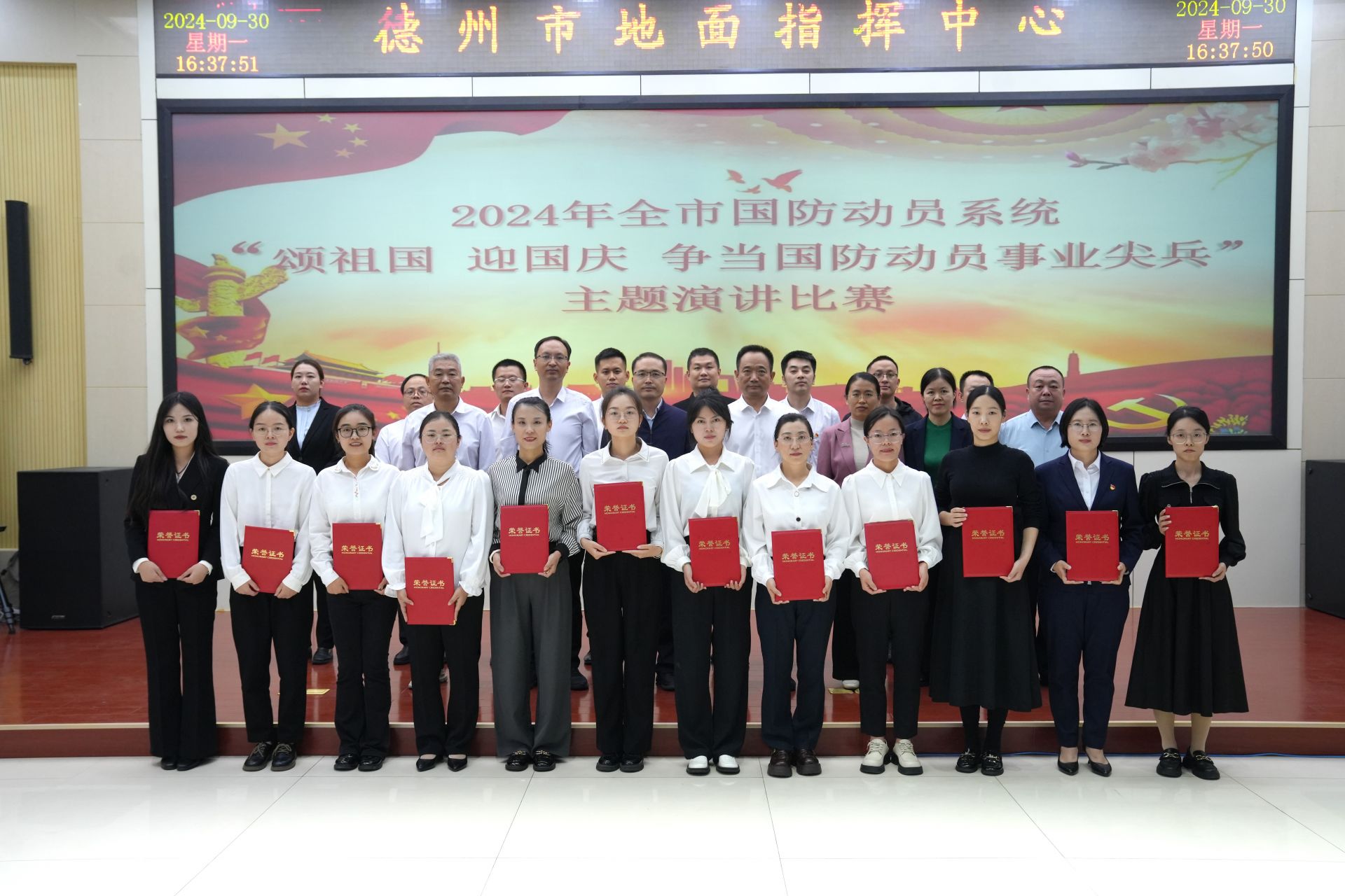 金秋送爽迎国庆,盛世华诞铸辉煌。为激励国动系统干部职工厚植爱党爱国情怀,爱岗敬业、担当奉献,9月30日,市国动办举办2024年全市国防动员系统“颂祖国 迎国庆 争当国防动员事业尖兵”主题演讲比赛。