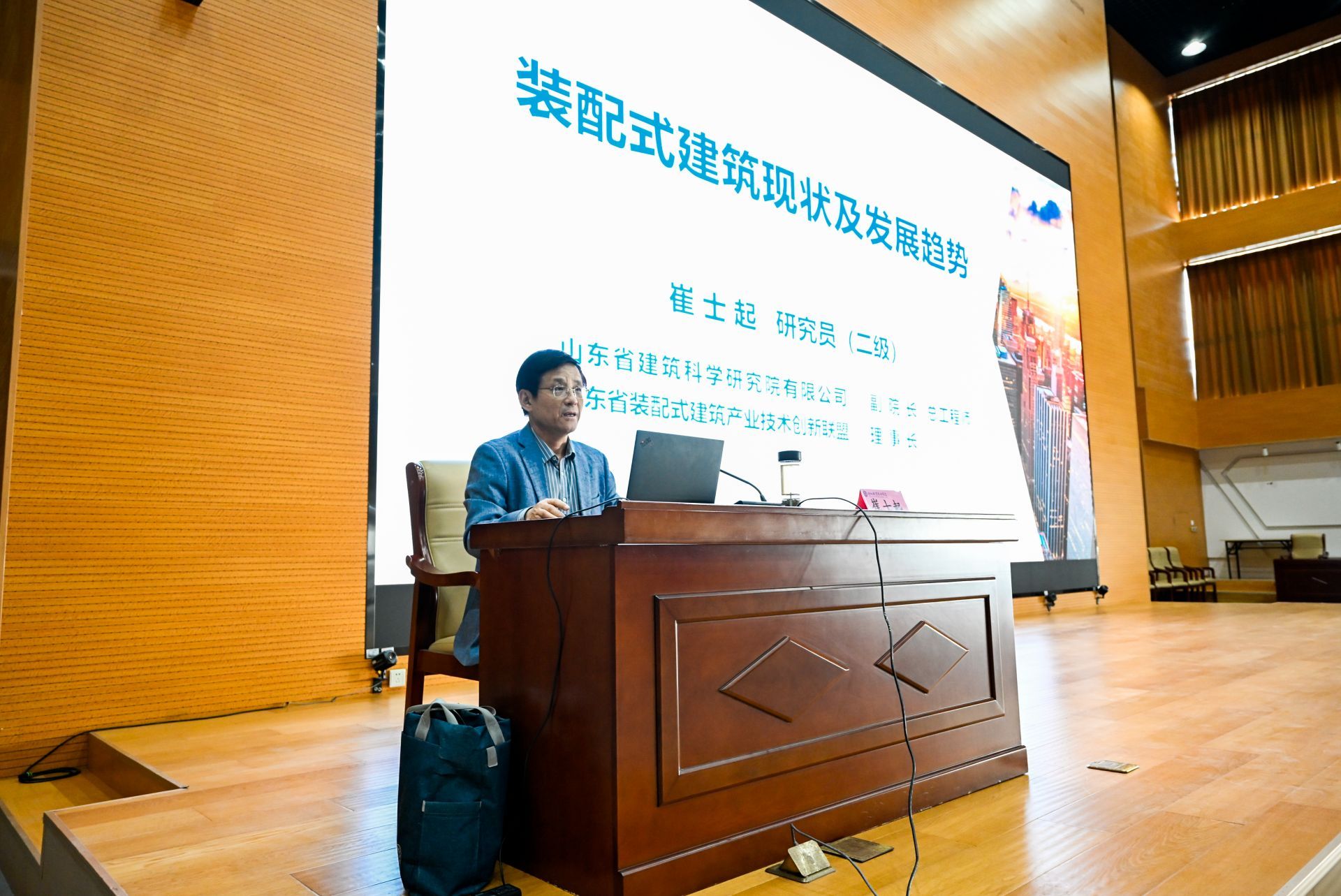 崔士起以《装配式建筑现状与发展趋势》为题进行了学术分享。他从装配式建筑现状及发展、智能建造政策支持、装配式建筑最新体系及连接、智能建造场景化应用案例等方面,详细讲述了建筑业新发展布局下的装配式建筑、智能建造的发展与趋势。