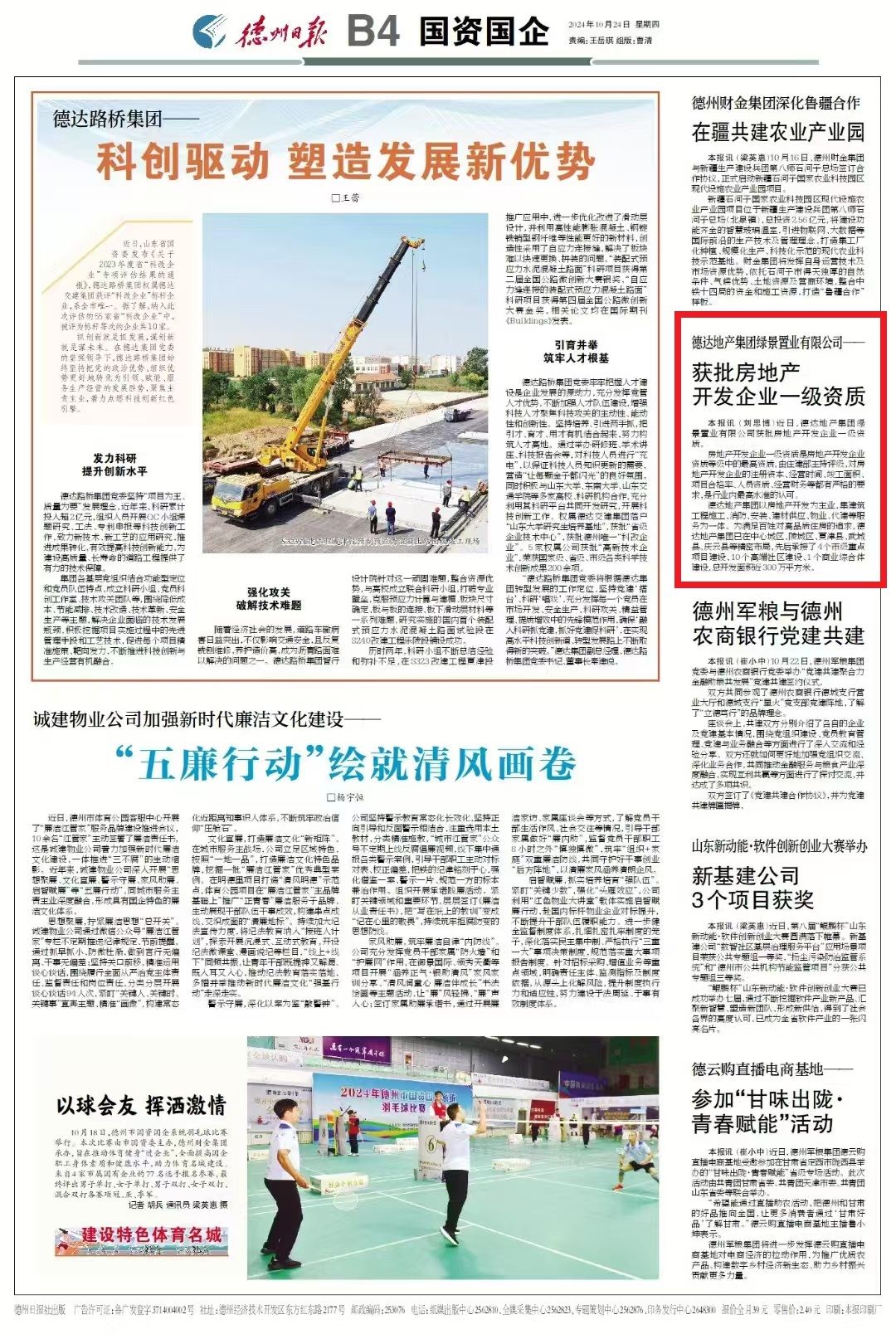 近日,德达地产集团绿景置业有限公司获批房地产开发企业一级资质。