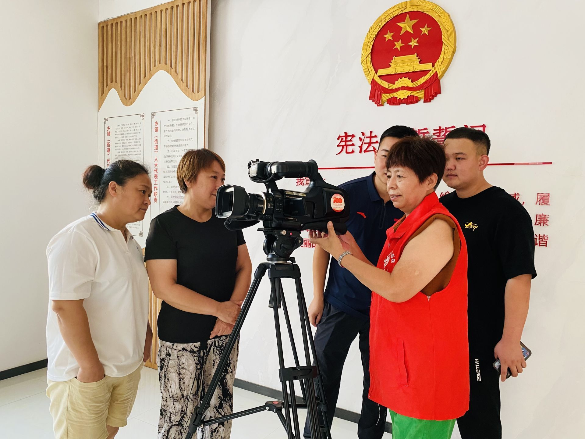 段书荣(右二)和村民回看拍摄效果