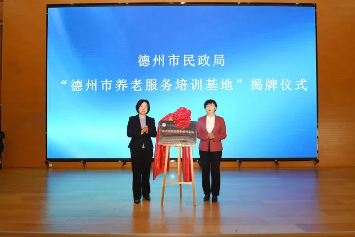 现场还为宁津县鹤翔老年服务中心、夏津县老年公寓、庆云县幸福苑养老服务中心、武城县第一中心敬老院、齐河九如城养老服务有限公司、山东旬彩养老服务有限公司、德州阳光颐养养老服务有限公司7家优秀养老机构授予“校外实践育人基地”称号。