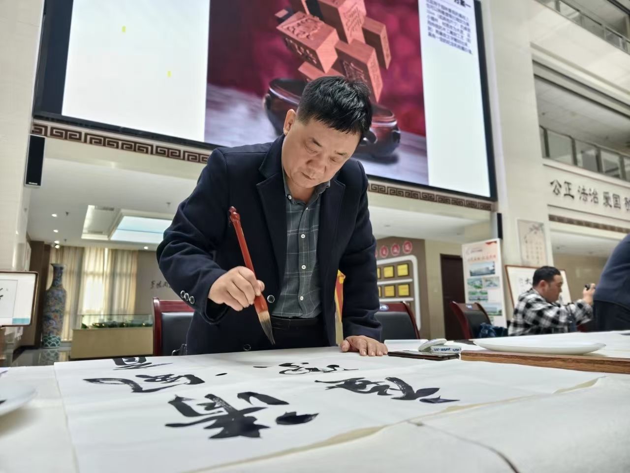 创作会上,举行了作品参观、主题研讨与即兴创作等活动。市纪委、市委宣传部、市文联和德州职业技术学院有关领导以及市美术家协会、市书法家协会、市楹联协会等各界的专家学者、教育工作者及艺术爱好者代表参加,并就高校廉政文化建设等提出意见建议。
