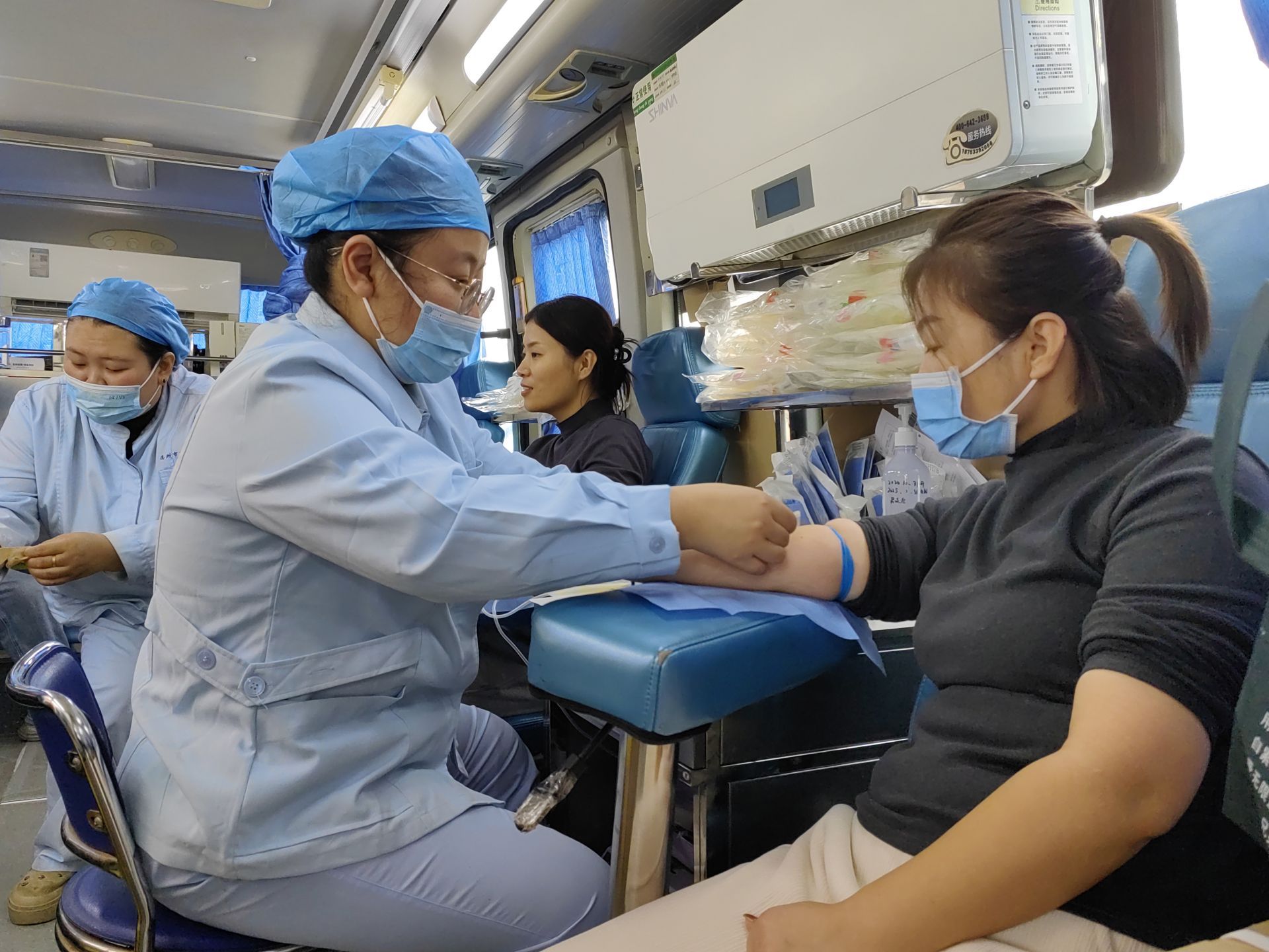 10月31日一早,两辆献血车刚停稳,医护人员上前询问无偿献血的相关事宜,日间手术科麻醉医师张树卿就是其中一位。填好表格后,他来到献血车上,挽袖配合市中心血站工作人员进行初检。“每次献血,我都觉得自己又救了一位患者。”张树卿说。他成功献血400毫升。