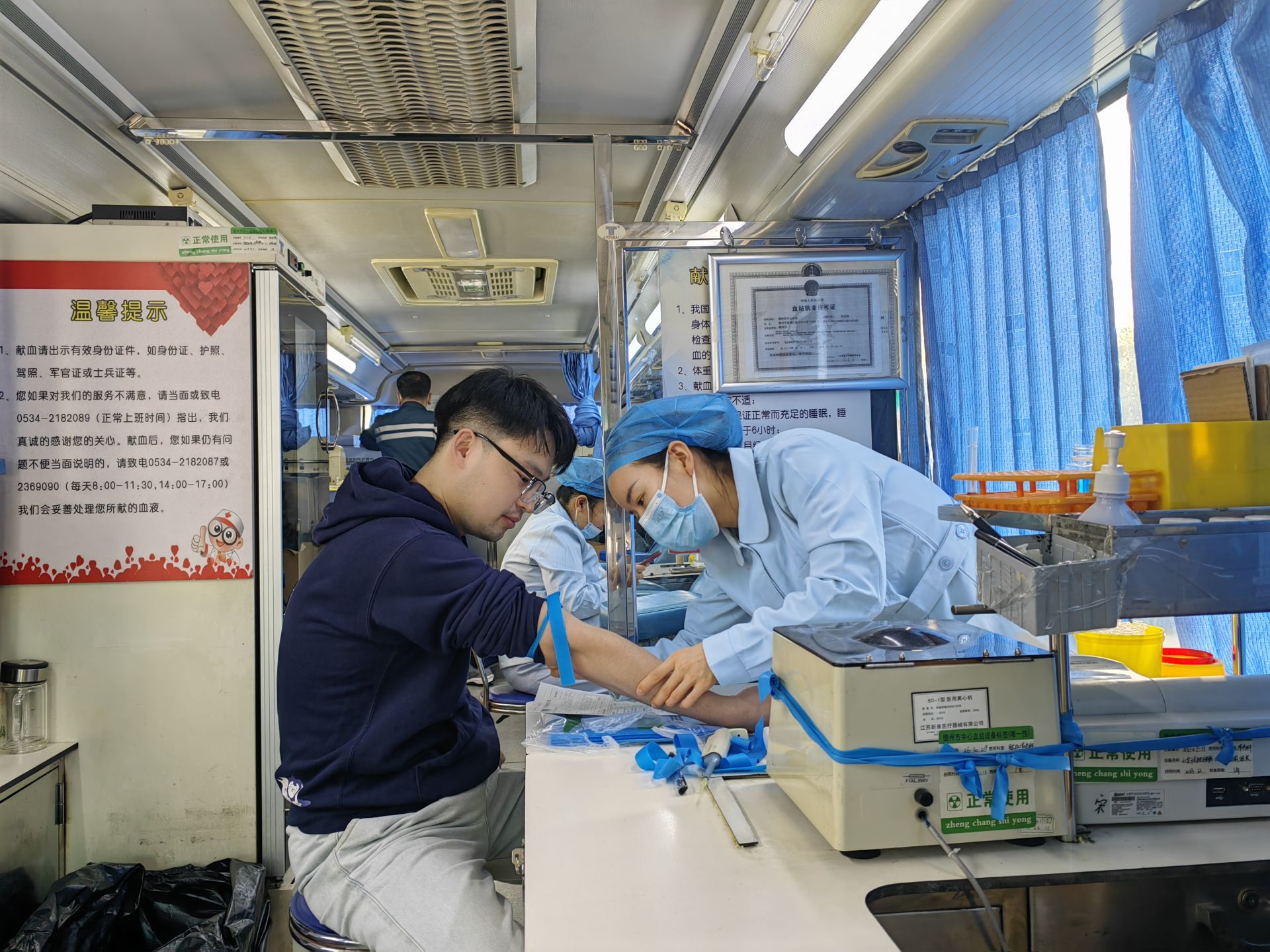 10月31日至11月2日,山大齐鲁医院德州医院组织无偿献血活动。医护人员走出诊室,短暂地离开他们熟悉的“战场”,卷起袖子,用无偿献血的方式,再次践行着他们救死扶伤的神圣使命。3天215人成功献血,总量为67450毫升。